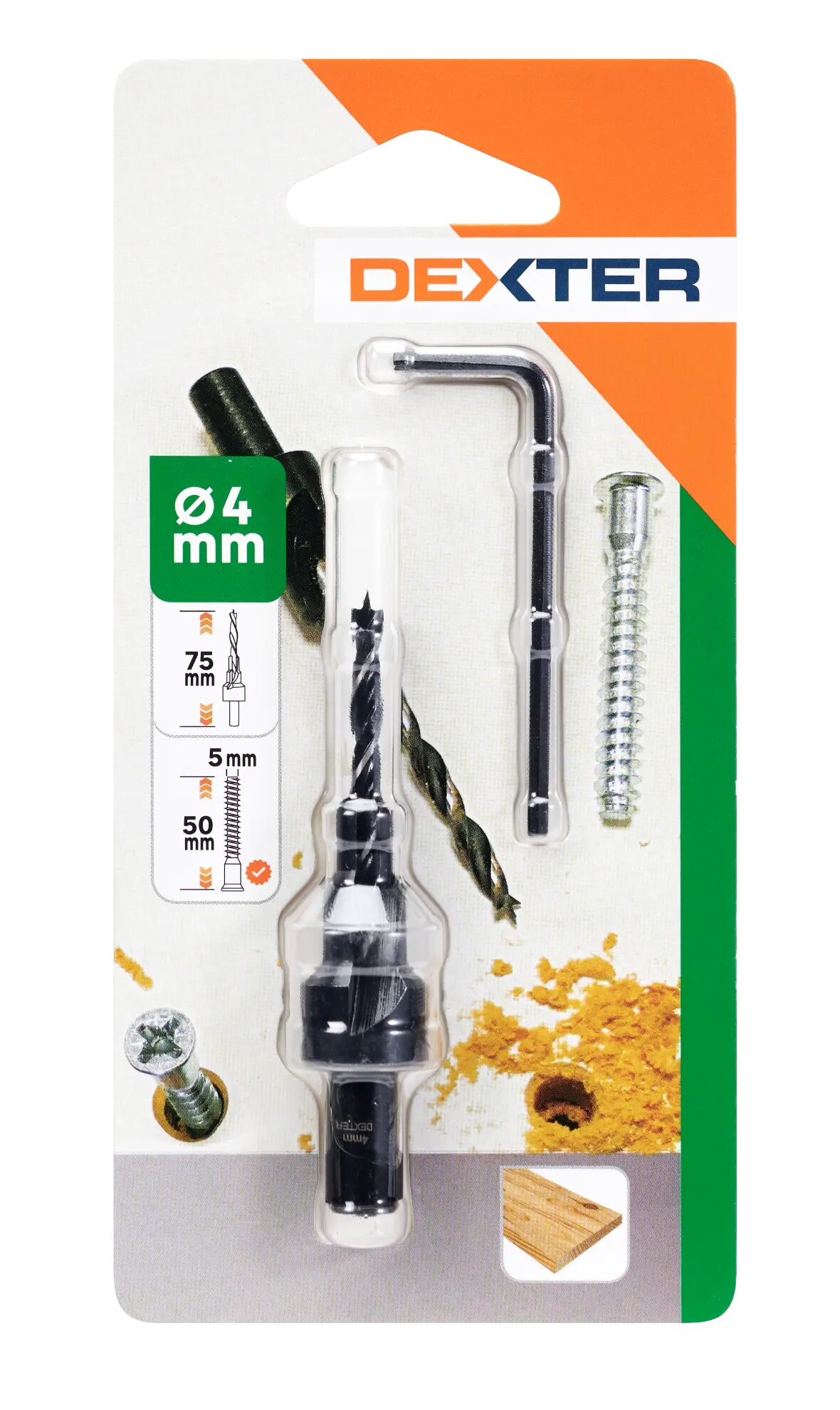 **Сверло под конфирмат по дереву Dexter SM24P01CDB152-1RU** — это оснастка, сочетающая в себе зенкер и спиральное сверло. Его используют для установки соединительных винтов, оснащенных потайной головкой. С его помощью создают отверстия под евровинт «под ключ», не выполняя дополнительную зенковку. Изделие подходит для пластика, твердой или мягкой древесины.