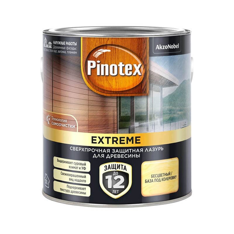 Лазурь Pinotex Extreme защищает окрашенные деревянные покрытия от воздействия влаги, солнечных лучей, плесени и перепадов температур. Содержит алкидную эмульсию и акриловый полимер. Технология самоочистки — грязь смывается дождем. Высокая степень укрывистости — средство равномерно наносится, покрывает без просветов. Полуматовый финиш позволяет видеть структуру дерева. Легко наносится кистью или валиком. Быстро сохнет и не образует подтеков. Подходит как для наружных, так и внутренних работ — фасадов, беседок, окон и заборов. Предназначена для различных видов древесины — сосны, ели, лиственницы и других пород.