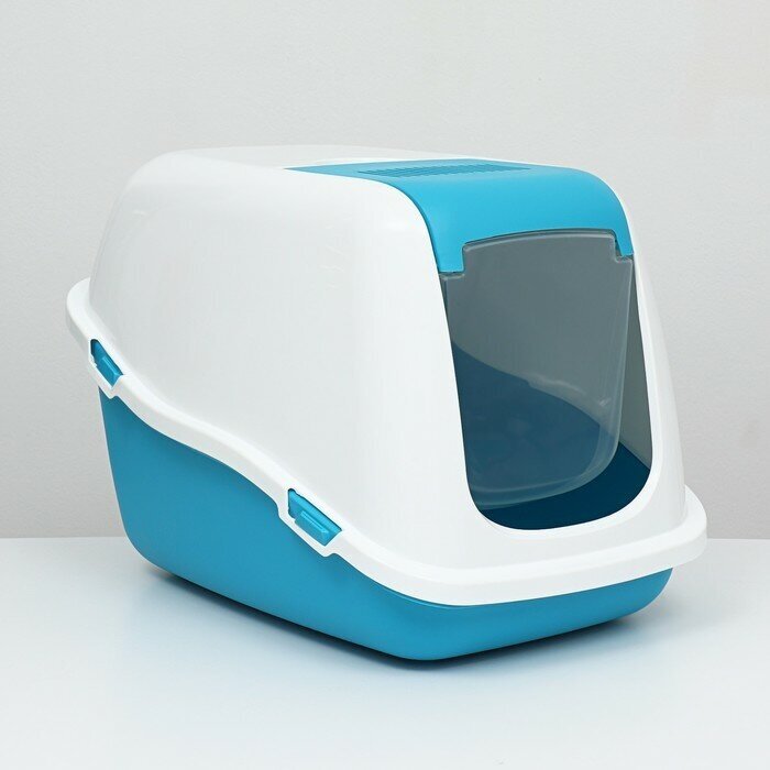 Pet-it домик-туалет для кошек Comfort (совок в наборе) (57 х 39 х 41 см.Бирюзово-белый)