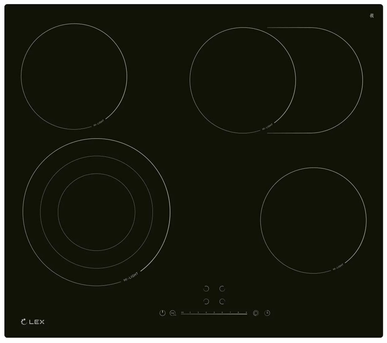 Электрическая варочная панель LEX имеет ширину встраивания 600 мм. Традиционный нагревательный элемент HiLight обеспечивает надежную работу и равномерность приготовления блюд. У этой модели четыре конфорки, две из которых с зонами расширения, необходимые для посуды с большим диаметром дна. Стеклокерамическая панель имеет черный цвет, функцию блокировки панели, индикатор остаточного тепла, комбинированную систему защиты от перегрева и выкипания, программируемый таймер автоматического отключения. Модель имеет толщину корпуса 51 мм., что позволяет устанавливать варочную поверхность в тонкие, бюджетные столешницы.