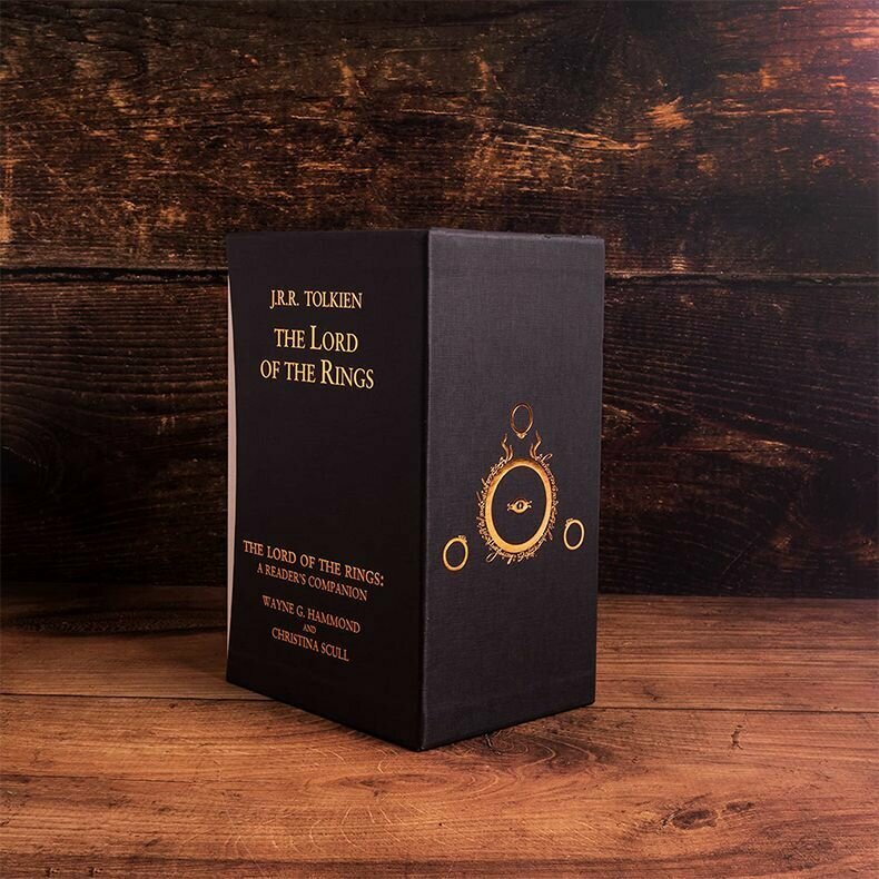 Four-volume boxed-set edition of The Lord of the Rings in hardback, featuring Tolkiens original unused dust-jacket designs, together with fourth hardback volume, The Lord of the Rings: A Reader's Companion. Includes special features and the definitive edition of the text. Since it was first published in 1954, The Lord of the Rings has been a book people have treasured. Steeped in unrivalled magic and otherworldliness, its sweeping fantasy has touched the hearts of young and old alike, with one hundred and fifty million copies of its many editions sold around the world. In 2005 Tolkiens text was fully restored with the full co-operation of Christopher Tolkien with almost 400 corrections, the original red and black maps as fold-out sheets, a fully revised and enlarged index, and for the first time a special plate section containing the pages from the Book of Mazarbul, making this set as close as possible to the version that J.R.R. Tolkien intended. Четырехтомное коробочное издание «Властелина колец» в твердом переплете с оригинальными рисунками суперобложек Толкиена, а также четвертый том в твердом переплете «Властелин колец: спутник читателя». Включает в себя специальные функции и окончательное издание текста. С момента первой публикации в 1954 году «Властелин колец» стал книгой, которой люди дорожили. Пропитанная непревзойденной магией и потусторонним миром, ее фантазия тронула сердца как молодых, так и старых, по всему миру было продано сто пятьдесят миллионов копий его многочисленных изданий. В 2005 году текст Толкиена был полностью восстановлен при полном содействии Кристофера Толкиена, с почти 400 исправлениями, оригинальными красными и черными картами в виде раскладных листов, полностью исправленным и увеличенным указателем и впервые со специальным разделом, содержащим страницы из Книги Мазарбул, что максимально приближает этот набор к версии, которую задумывал Дж.Р.Р. Толкин. хоббит, властелин колец, братство кольца, две крепости