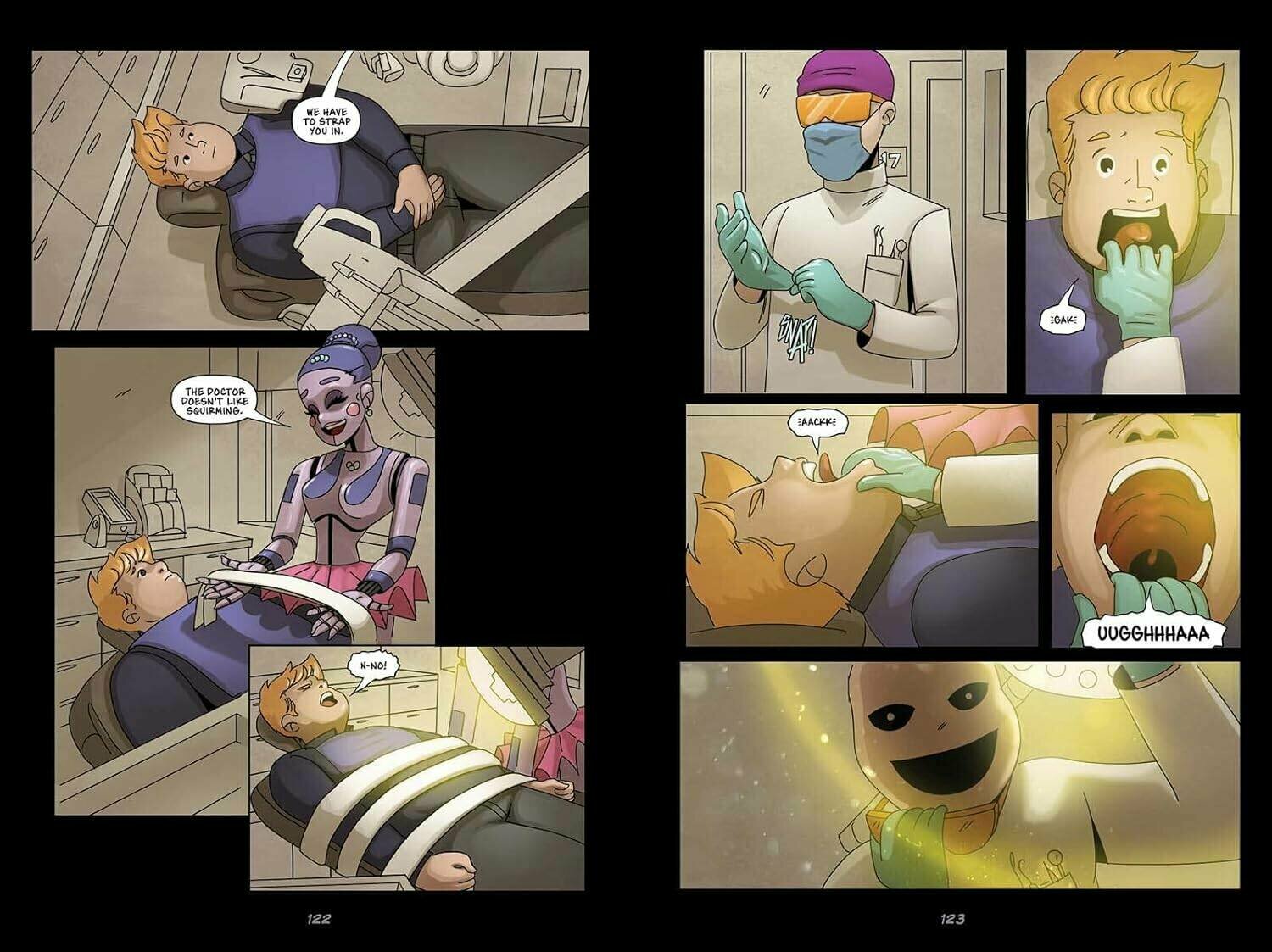 The New York Times bestselling series is now a graphic novel! Five Nights at Freddy's fans won't want to miss this pulse-pounding collection of three novella-length comic stories that will keep even the bravest player up at night... Oscar, ever the miniature grown-up his mom needs him to be, decides to take something he wants... even though he knows it's wrong. Stanley is newly dumped, stuck in a dead-end job for a mysterious employer, and unable to connect with anyone. And Devon, abandoned by his dad and ignored by his mom, can't understand why love and friendship come so easily to everyone except him. Unfortunately, in the callous world of Five Nights at Freddy's, it's always in the depths of loneliness when evil creeps in. In this volume, three stories from the New York Times bestselling series Five Nights at Freddy's: Fazbear Frights come to life in delightfully horrifying comics. Readers beware: This collection of terrifying tales is enough to unsettle even the most hardened Five Nights at Freddy's fans. Серия бестселлеров New York Times теперь превратилась в графический роман! Фанаты Five Nights at Freddy's не захотят пропустить этот захватывающий сборник из трех комических историй длиной в новеллу, которые не дадут уснуть даже самому смелому игроку... Оскар, каким бы миниатюрным взрослым он ни был нужен своей маме, решает взять то, что хочет... хотя и знает, что это неправильно. Стэнли недавно бросили, он застрял на бесперспективной работе у загадочного работодателя и не может ни с кем связаться. А Девон, брошенный отцом и игнорируемый мамой, не может понять, почему любовь и дружба так легко достаются всем, кроме него. К сожалению, в бездушном мире Five Nights at Freddy's зло всегда закрадывается вглубь одиночества. В этом томе три истории оживают в восхитительно ужасающих комиксах. Читатели, будьте осторожны: этого сборника ужасающих историй достаточно, чтобы расстроить даже самых заядлых фанатов Five Nights at Freddy's.