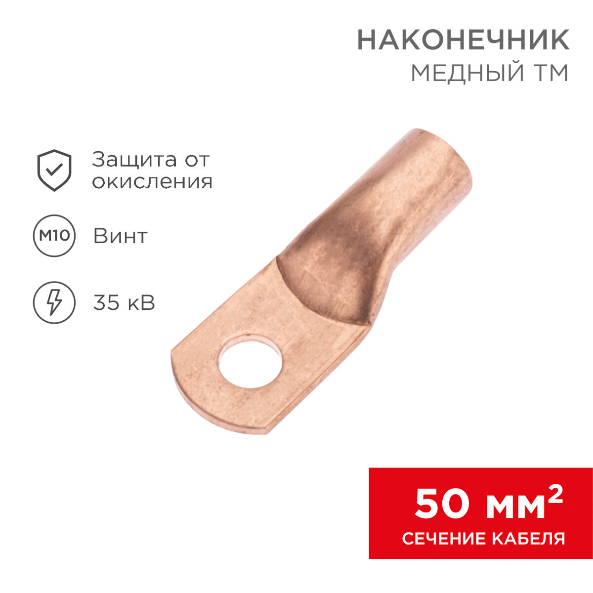 Наконечник Rexant медный ТМ 50-10-11 (50мм2 - диам. 11мм) 07-5323-1