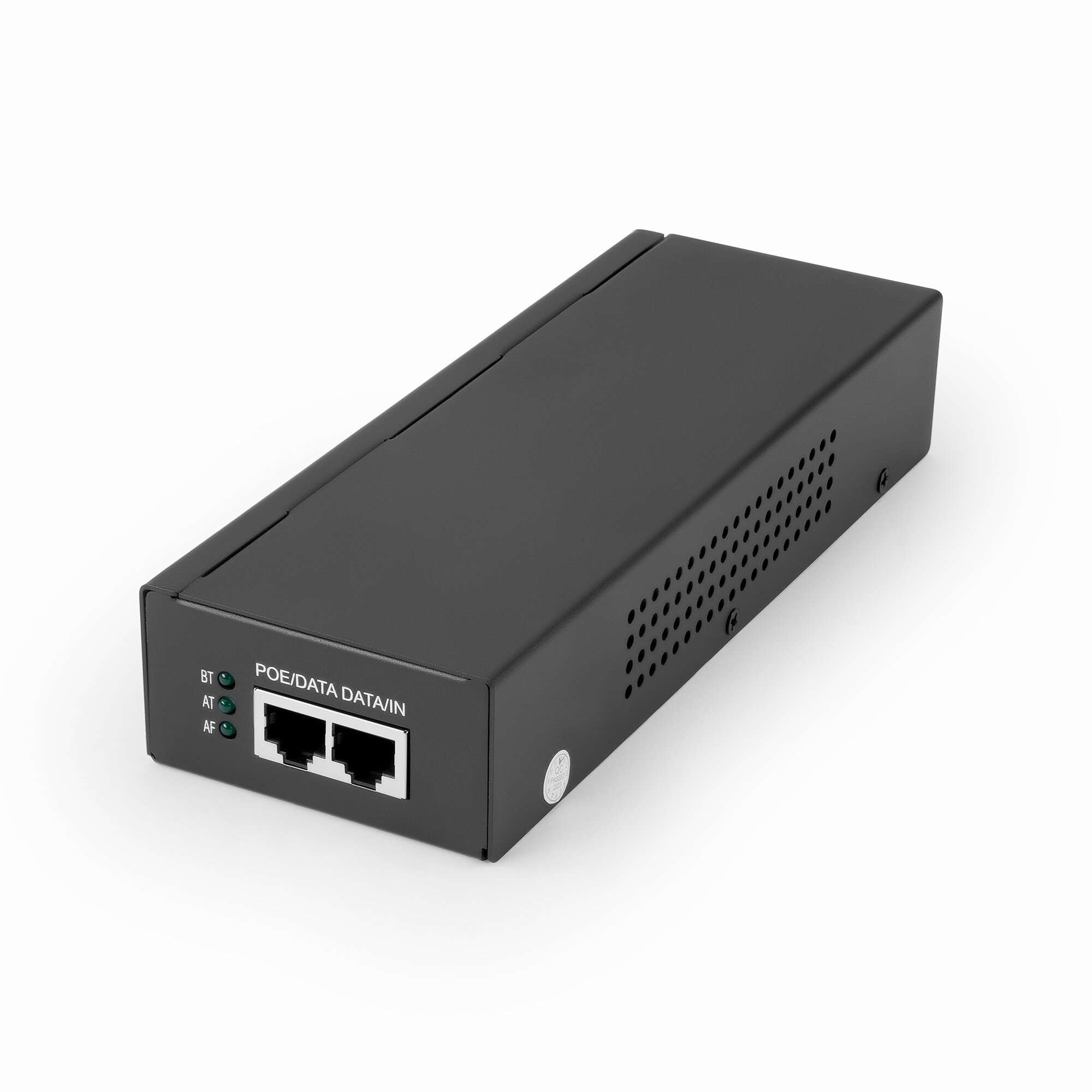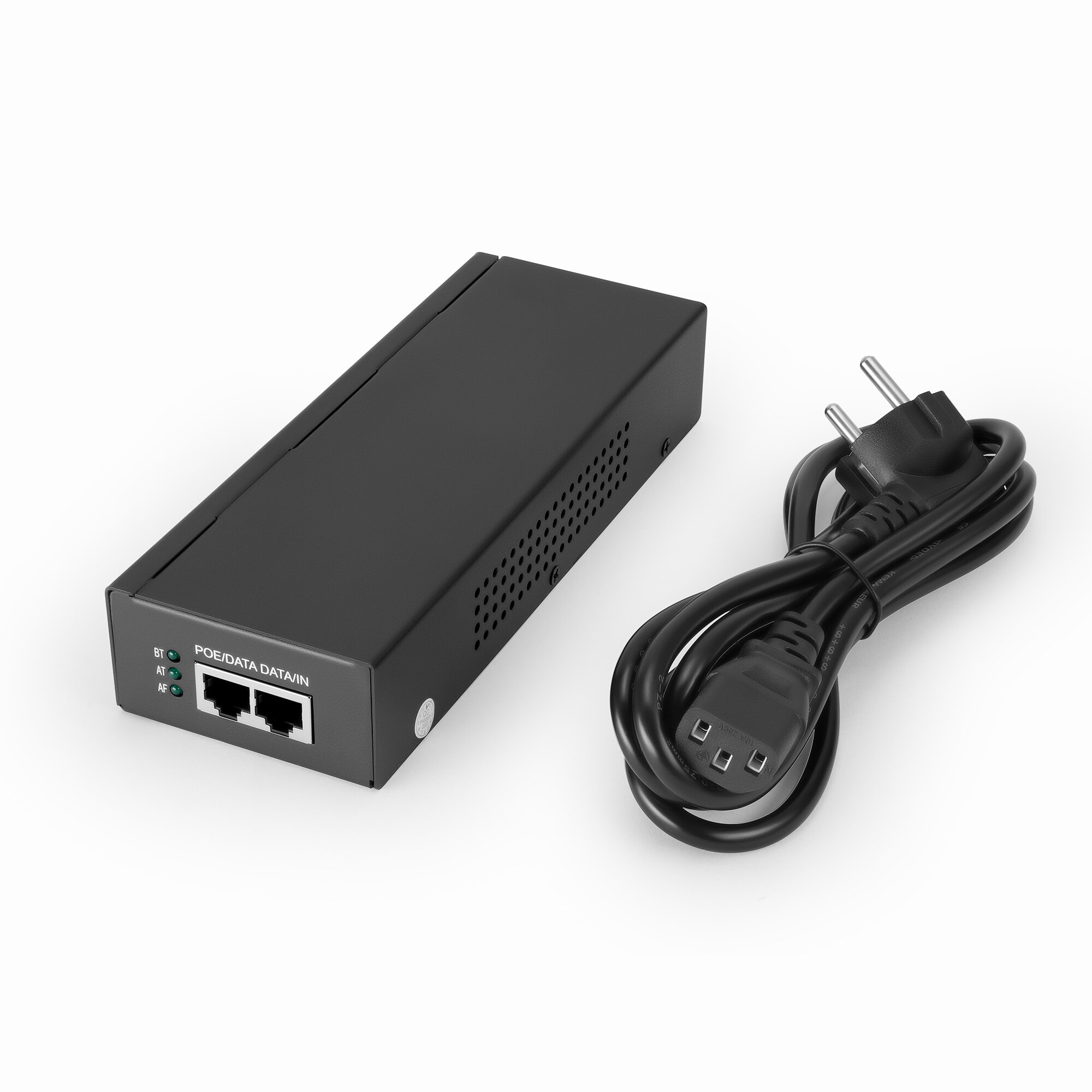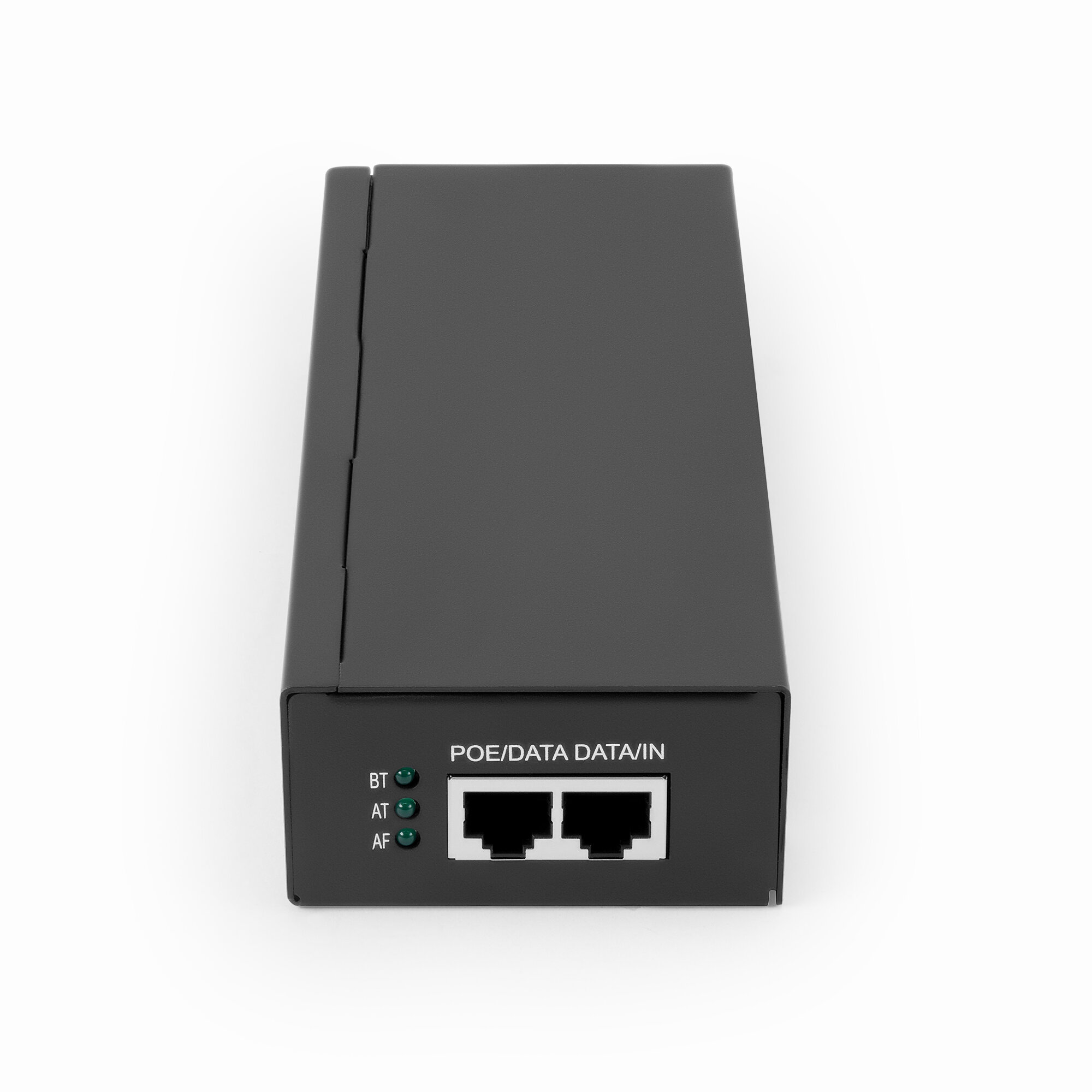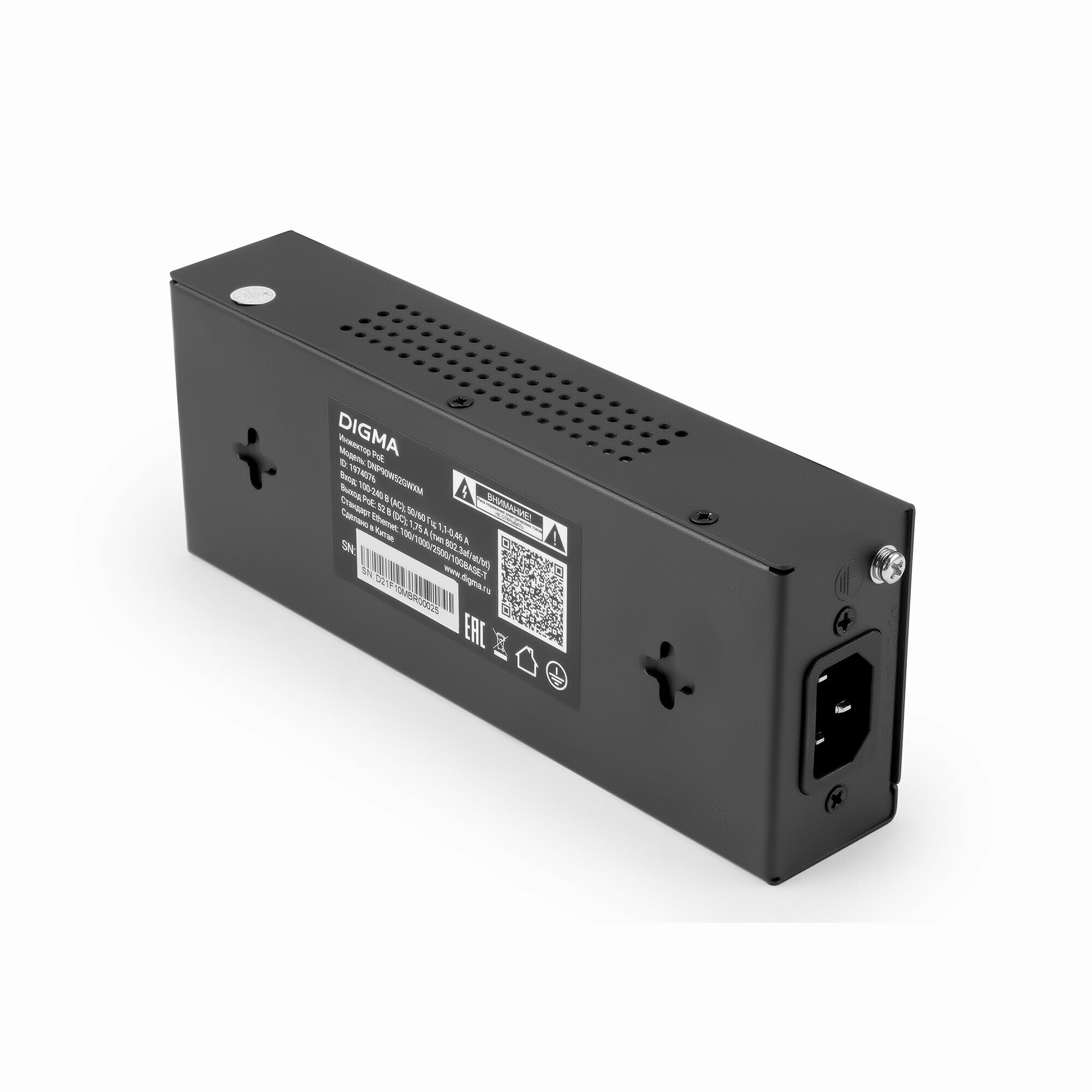 Digma – мощный и надежный PoE-инжектор, который позволит передавать подключенным устройствам электропитание и данные по одному Ethernet-кабелю. PoE-инжектор оснащен двумя гигабитными портами: один – для одновременной передачи питания и передачи данных, второй – только для данных. Модель обеспечивает передачу данных на скоростях 100 Мбит/с, 1 Гбит/с, 2,5 Гбит/с и 10 Гбит/с. Это особенно актуально, если вам нужна высокопроизводительная Wi-Fi точка доступа с поддержкой PoE и портом до 10Гбит/с в офисе. Она сможет раздавать быстрый Wi-Fi на много устройств, включая смартфоны, ноутбуки, ВКС-терминалы и др.