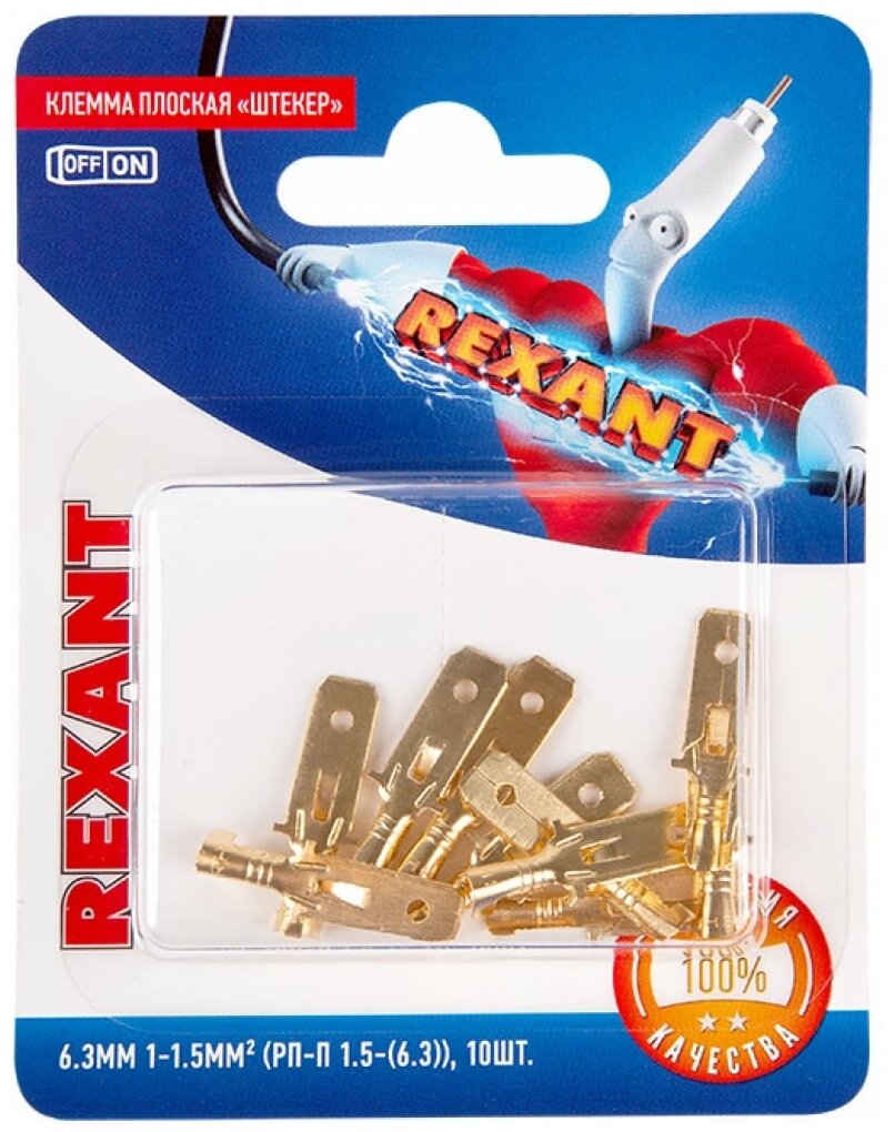 Клемма Rexant плоская штекер 6.3 мм 0.75-1.5 мм2 (РП-п 1.5-(6.3) L = 20 мм) в упак. 10 шт. 06-0398-A