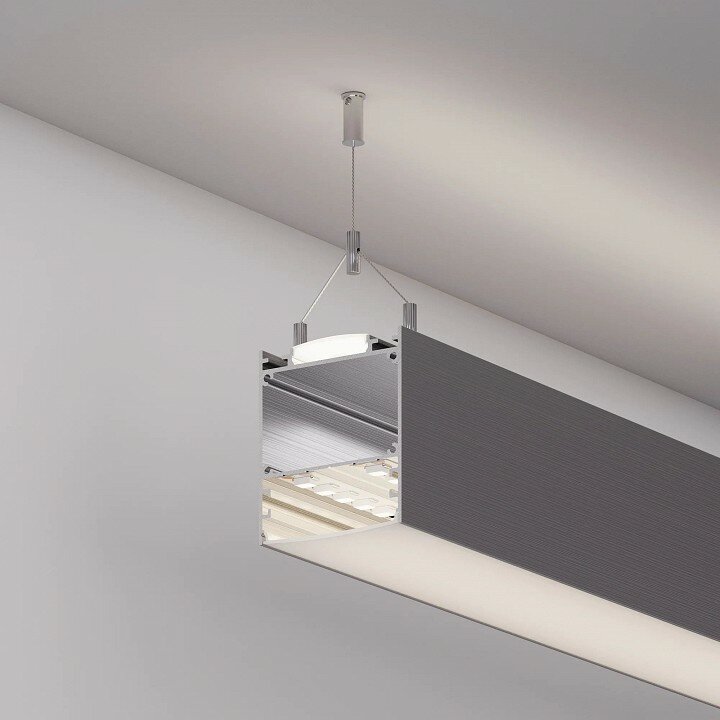 Подвесной профиль из анодированного алюминия черного цвета с отсеком для блока питания (48,2х35,2 мм) с двусторонним свечением для создания эффекта «отраженного света» идеально подходит для основного освещения помещений.