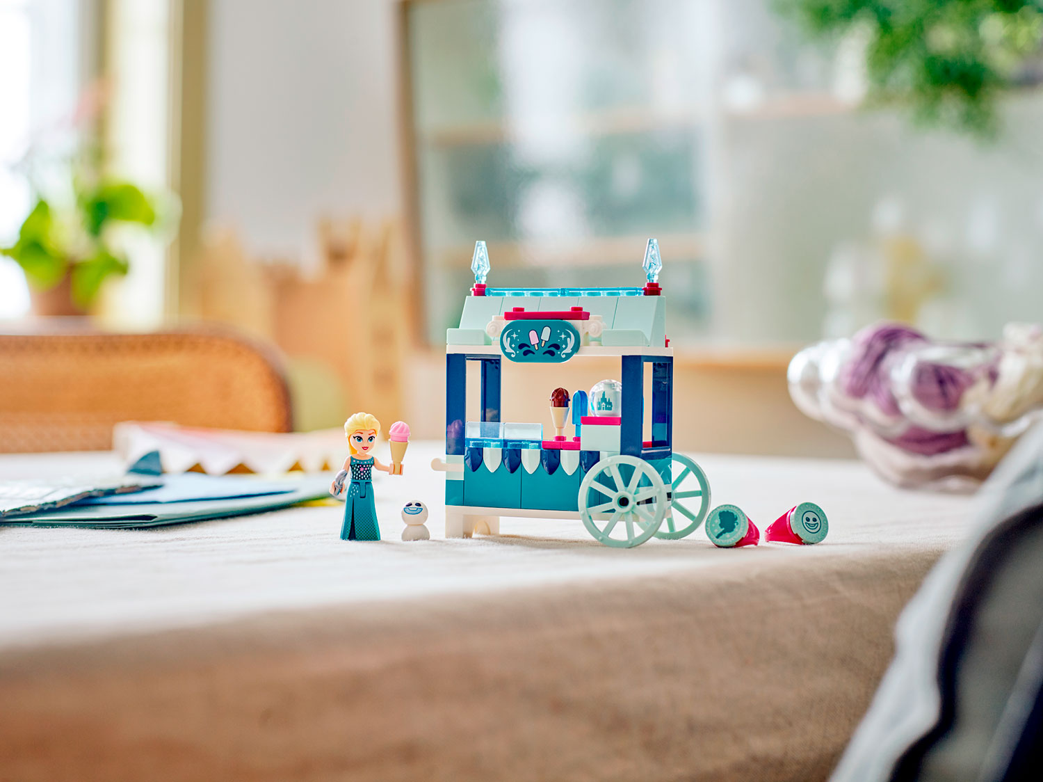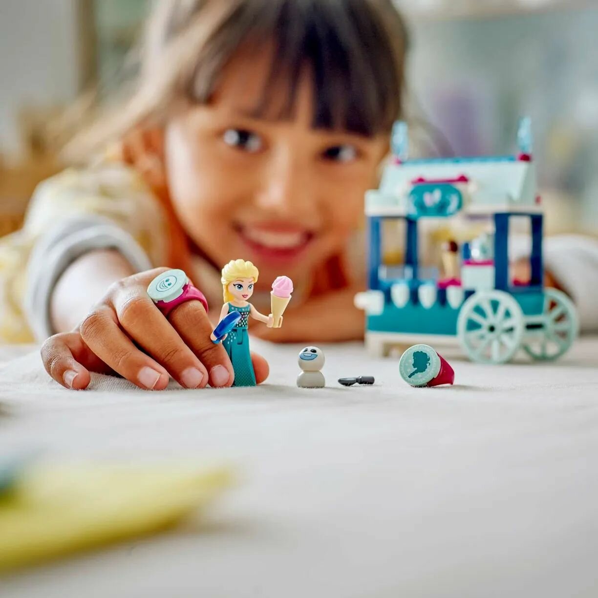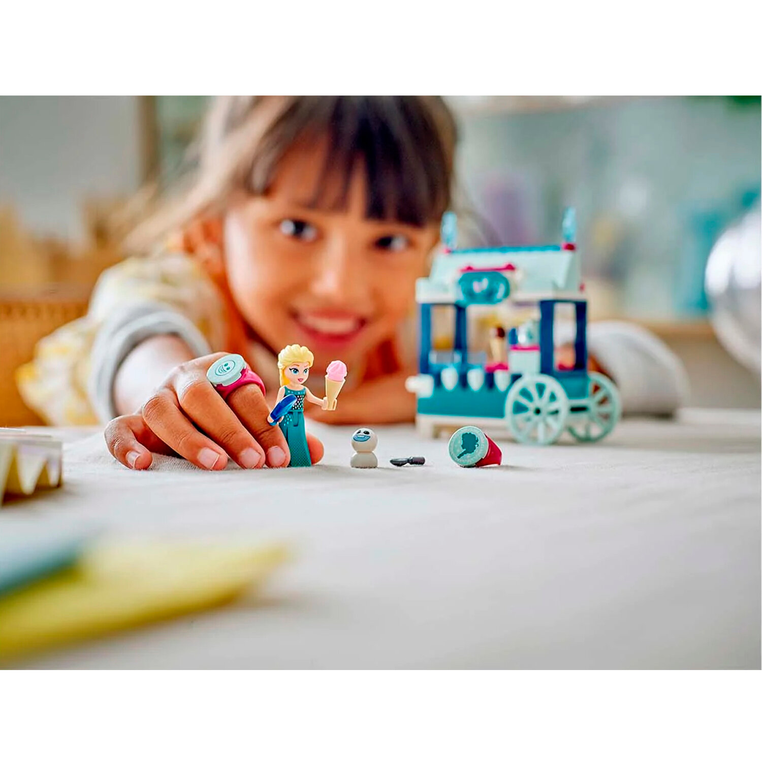 Порадуйте поклонников Принцесс и детей в возрасте от 5 лет этим набором строительных игрушек Lego Princess Холодное Сердце (43234). Коробка содержит сборную тележку для мороженого с мороженицей, 2 рожка для мороженого, 2 леденца на палочке и другие вкусности. В комплект входят мини-кукла Эльза из Lego фигурка Снежинки для начала ролевой игры, а также 2 коллекционных кольца со сменными украшениями.