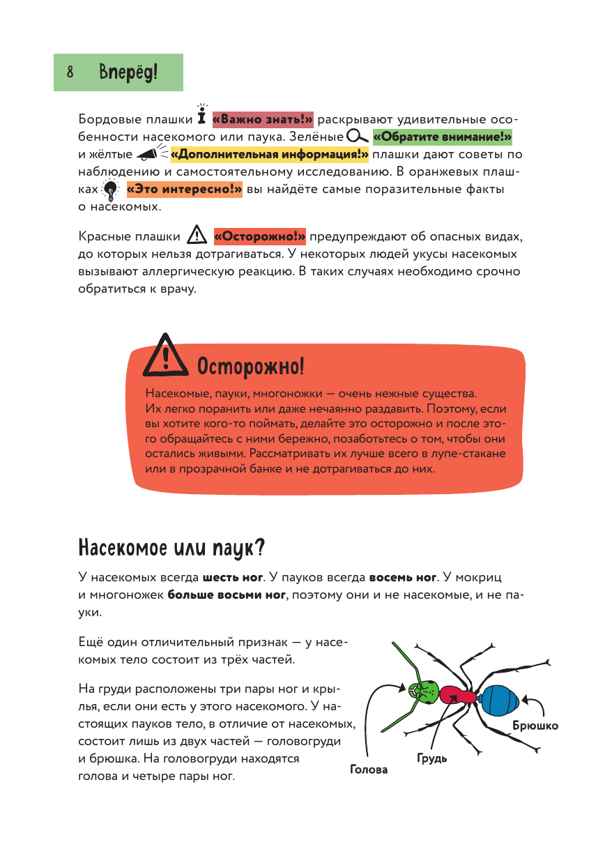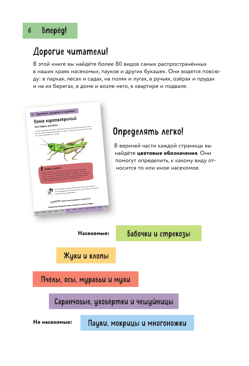 Уникальная энциклопедия для тех, кому интересен мир насекомых! Этот справочник-определитель содержит подробнейшие сведения о более чем 80 видах самых распространённых членистоногих нашей планеты: места обитания, особенности строения, периоды активности, способы общения и взаимодействия с человеком, а также много интересных фактов из истории открытия новых видов.