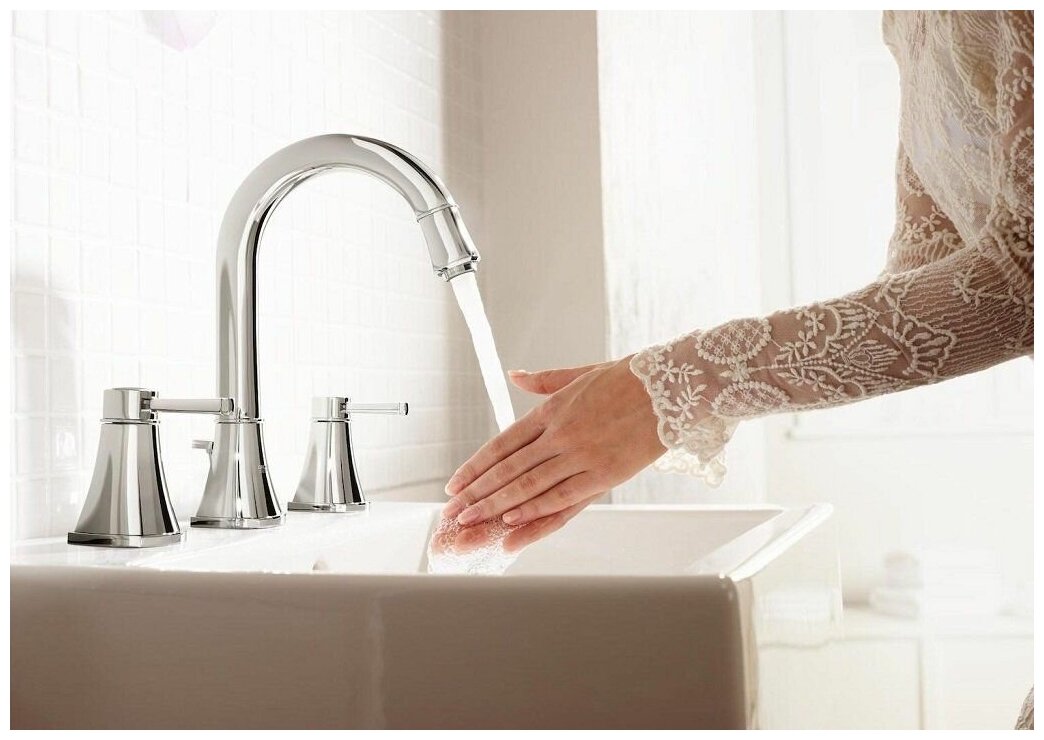 Дизайнерское решение этого смесителя со встроенным штоковым сливным клапаном и отдельными рычагами для холодной и горячей воды представляет собой удачный синтез классических и современных форм. Декоративные элементы подчеркивают превосходное качество изготовления данной модели, а хромированные поверхности выразительных обтекаемых форм переливаются мягкими бликами. За счет высоты излива пространства под ним достаточно даже для того, чтобы с комфортом мыть голову в раковине.