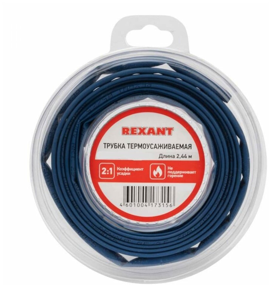 Трубка термоусадочная Rexant ТУТ нг 60/30мм синяя ролик 244м 29-0035