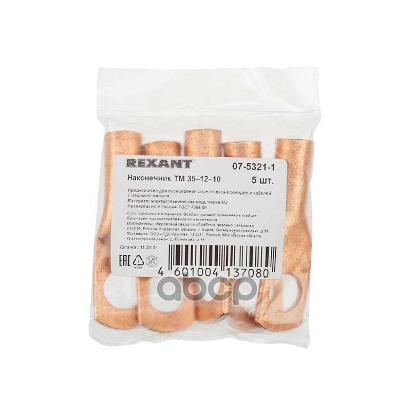 На сегодняшний день товар «Наконечник Rexant медный ТМ 35-12-10 (35мм2 - диам. 12мм) 07-5321-1» можно купить с кешбеком в 2 магазинах: xcom-shop, Яндекс.Маркет