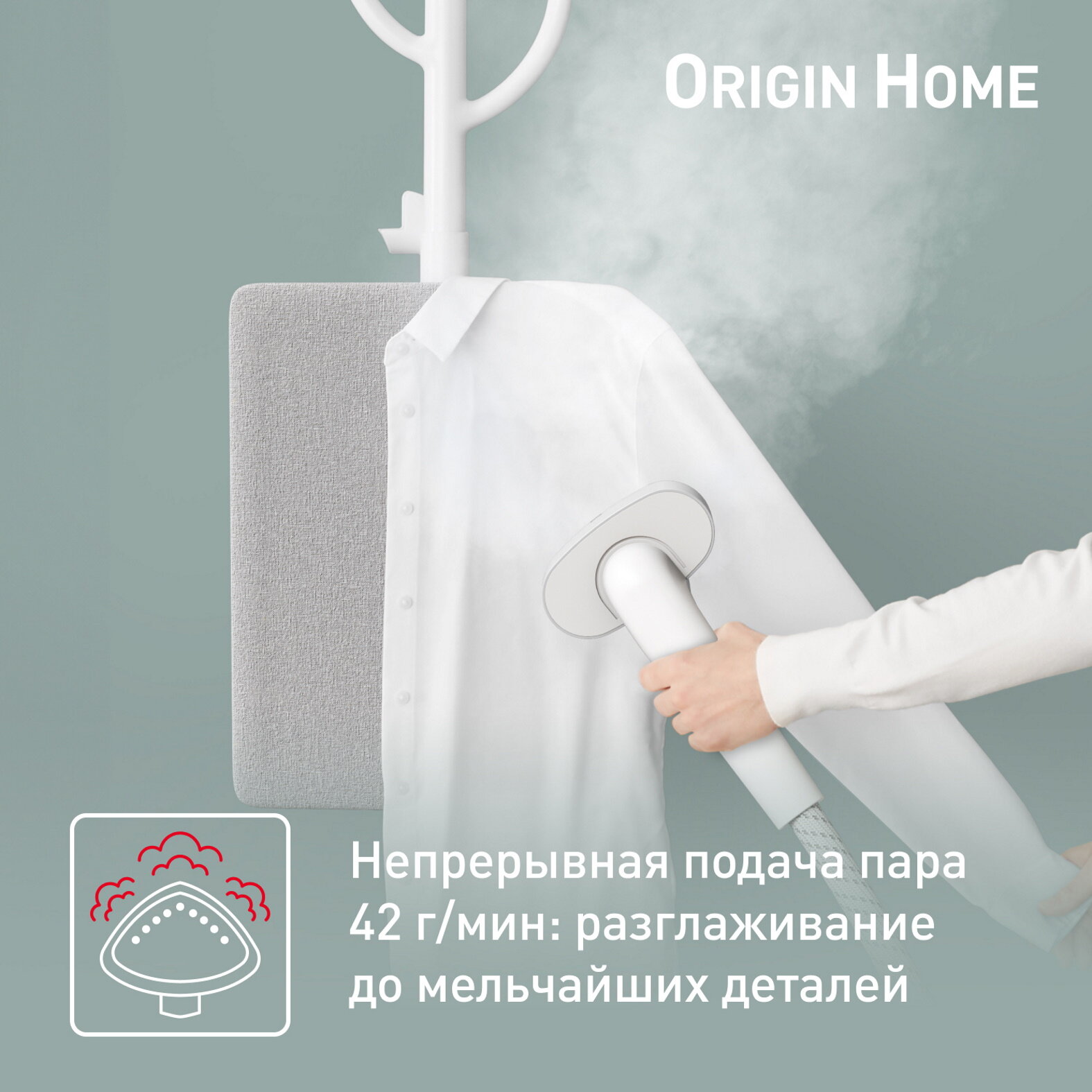 Для незаметного ухода за одеждой, который одновременно служит вешалкой для одежды, Origin Home от Tefal предлагает все необходимое для того, чтобы выйти за дверь и выглядеть наилучшим образом в кратчайшие сроки. Этот удобный вертикальный отпариватель предлагает: мощный постоянный пар до 42 г/мин, всегда под рукой, не нужно настраивать, чтобы ухаживать за одеждой с полной легкостью, быстрое время разогрева 45 секунд, 3 уровня пара с эко-режимом, дезинфицирующий пар и многое другое.
