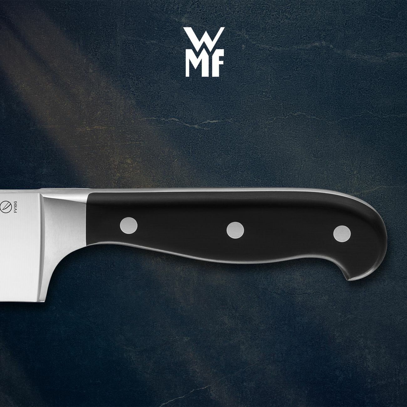 Кухонный шеф-нож WMF легко справится с разделкой мясных туш, разрезая даже кости.