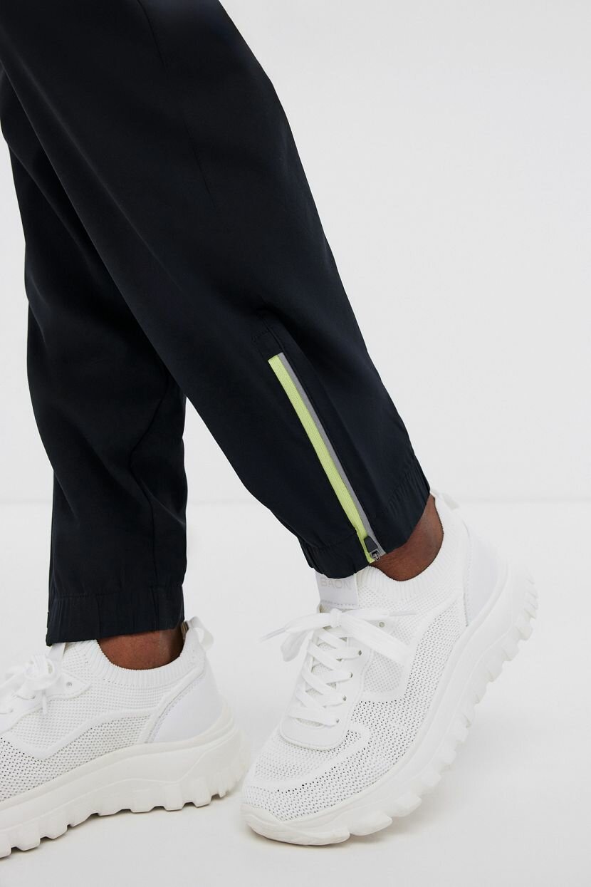 Брюки - идеальное повседневное решение для прогулок и тренировок. Их свободный крой, сужающийся к низу, напоминает всеми любимые джоггеры. Они не сковывают движений во время занятий спортом и дарят уверенность в себе. Красивая посадка по фигуре делает модель оптимальным вариантом на каждый день. Фиксируются на талии эластичным поясом. Брючины завершаются манжетами на резинке, которые комфортно прилегают. Внизу расположена декоративная молния со светоотражающей тесьмой. Функциональность изделия повышают вместительные карманы листочки. Они застегиваются, что предотвращает потерю содержимого. Выполнены из мягкого приятного к телу спортивного трикотажа. Материал устойчив к растяжению и выцветанию. Поэтому длительно сохраняют безупречный внешний вид.