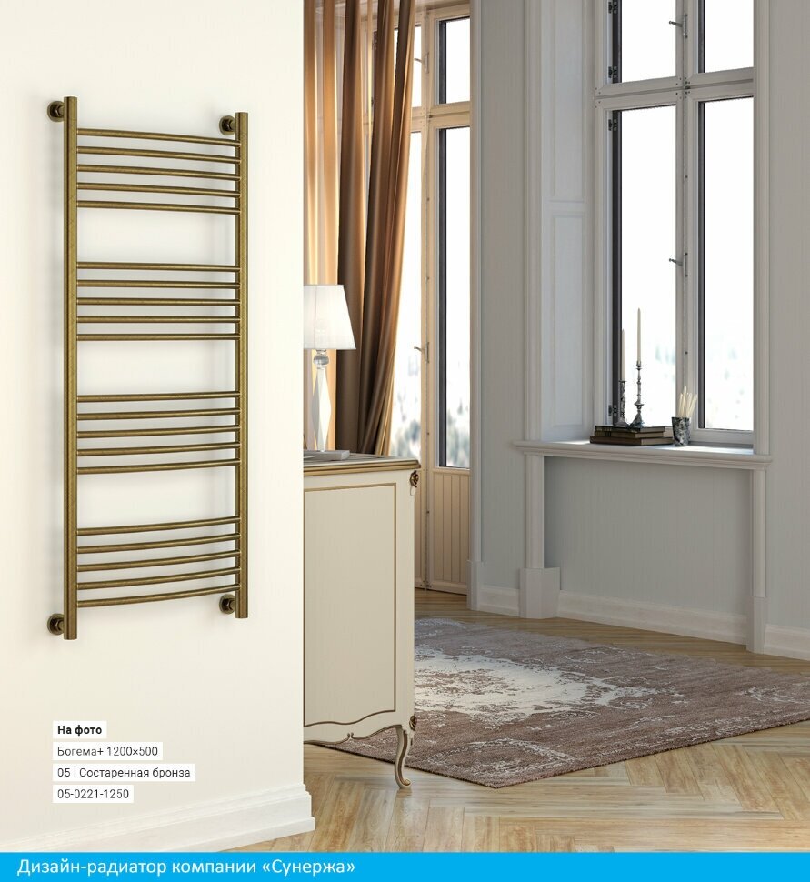 Полотенцесушитель Сунержа Богема + с защитой от блуждающих токов выгнутый 100х50, золото (размер: 106х55 см)