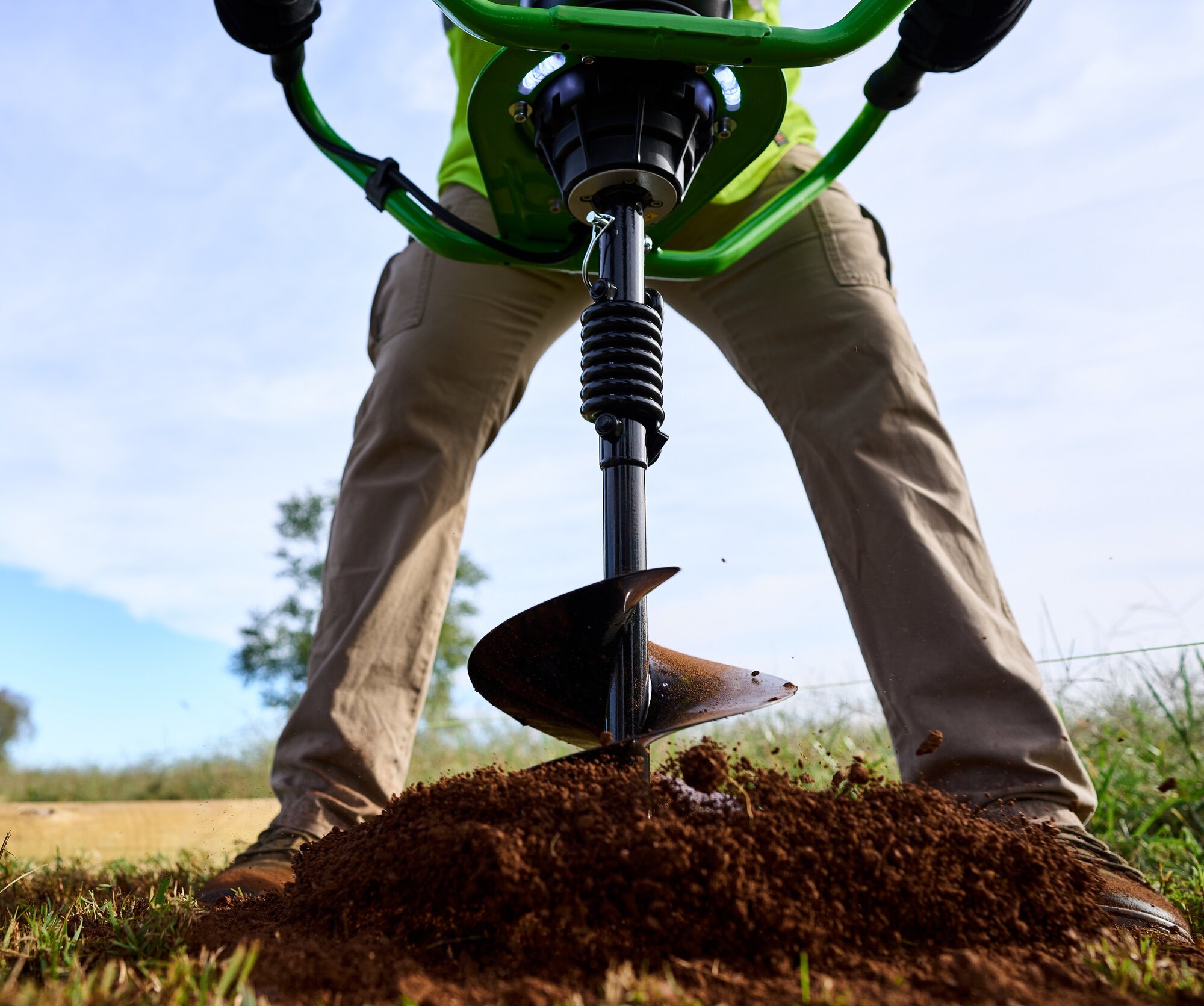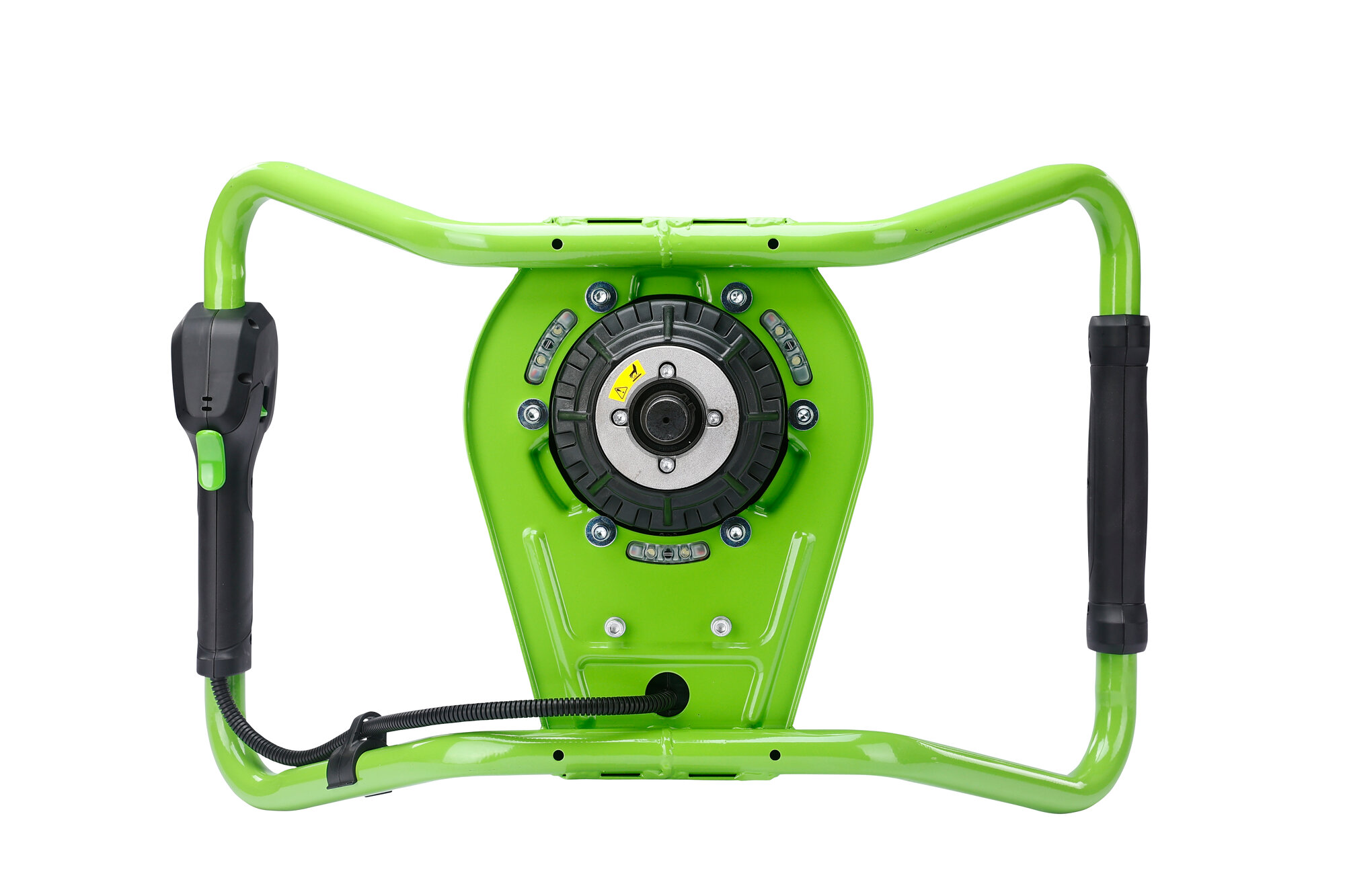 Мотобур аккумуляторный Greenworks Арт. , 82V, без АКБ и ЗУ из линейки Greenworks Commercial. -Устройство со множеством применений! Строители используют его для бурения ям под сваи, столбы, подготовки фундамента. Рытье траншеи существенно облегчится, если сначала пробурить отверстия в грунте близко друг к другу, а потом просто их соединить. Садоводом мотобур пригодится при посадке деревьев и кустарников. Любители зимней рыбалки оценят достоинства применения мотобура для сверления лунок (шнек для льда в комплект не входит). Для мотобура подходят самые распространенные на рынке шнеки с посадочным диаметром 20 мм. По сравнению с бензиновыми аналогами обладает, неоспоримыми преимуществами. Первое это реверс - вращение шнека против часовой стрелки. Очень полезная функция при работе со сложными грунтами, когда необходимо вытащить шнек из грунта. В бензиновых устройствах реверс встречается редко и существенно увиливает их цену. Второе – функция защиты от отдачи которая повышает безопасность работы устройства. Функция реализована наиболее инновационным способом - при помощи встроенного гироскопа. В других мотобурах представленных на рынке, функция защиты от отдачи (если она есть) реализуется с помощью рычага, который при работе касается левого бедра оператора.Мотобур отличается высокой производительностью и способен пробурить до 35 отверстий диаметром 200 мм на одном заряде АКБ емкостью 5Ач.Технические данные:Надежный бесщеточный двигатель DigiPro;Мощность 1400 Вт (1,9 л. с.);Крутящий момент жесткий 110 н*м;Крутящий момент мягкий 80 н*м;Максимальные обороты вала без нагрузки 210 об./мин; Обороты реверса: 50 об./мин;Диаметр вала 20 мм;Бурение отверстий диаметром 200 мм со шнеком, входящим в комплект;Надежная стальная рама;Нескользящие ручки для надежного хвата;Подсветка рабочей зоны;Электронный тормоз для быстрой остановки после выключения;Плавный пуск позволяет избежать рывков и перегрузок; Защита от отдачи;Защита от перегрузки;Защита от перегрева;Масса устройства без АКБ и шнека около 8,55 кг.Преимущества:Без шума, вибрации, бензина и выхлопов.Не требует технического обслуживания, замены фильтров и свечей.Надежный бесщеточный двигатель DigiPro.Запускается простым нажатием кнопки, не требует манипуляций с подкачкой топлива, дросселем, стартером.Комплектация:Мотобур аккумуляторный Greenworks 82V, без АКБ и ЗУ;Шнек с амортизатором, диаметр 200 мм;Удлинитель шнека 453 мм;Шплинт 2 шт;Руководство по эксплуатации;Гарантийный талон;Внимание: этот комплект поставляется без аккумулятора (АКБ) и зарядного устройства (ЗУ).