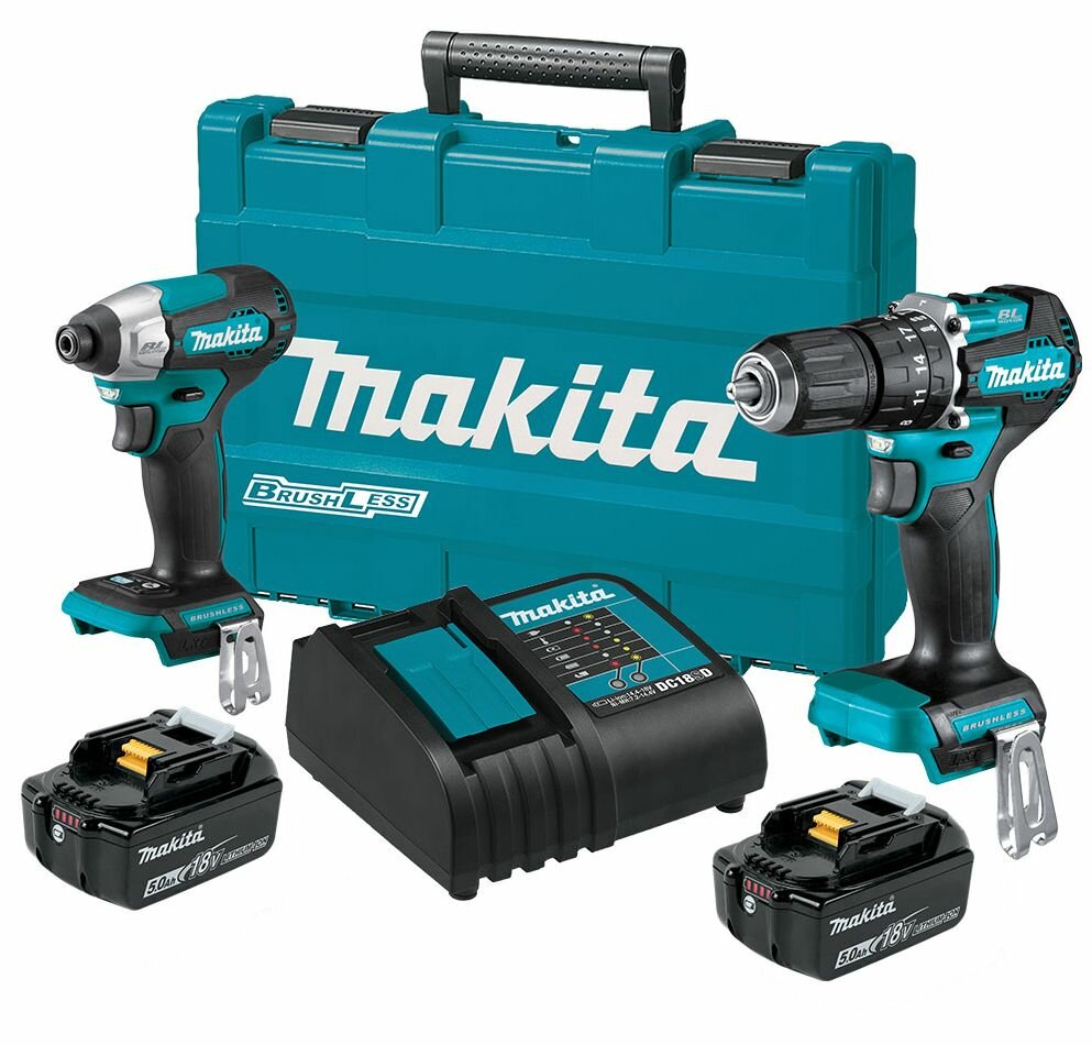 Ударный шуруповерт DTD157 имеет крутящий момент 140 Нм, оснащён бесщёточным двигателем и функцией автоматического помощника (A-mode). Улучшенная система фиксации биты для уменьшения люфта. Измененная конструкция зубчатой передачи делает инструмент более компактным. Двойная подсветка с функцией до- и после- свечения и технология защиты от пыли и влаги XPT.Ударная дрель-шуруповерт DHP487 предназначена для сверления отверстий с ударным действием в кирпичной и каменной кладке. В режиме обычного (безударного) действия можно использовать инструмент в качестве шуруповерта, а также сверлить дерево, металл, керамику и пластик. Оснащена бесщеточным двигателем, электронной регулировкой оборотов, электрическим тормозом, реверсом. Удобный быстрозажимной патрон 13 мм для быстрой замены бит.В набор входят для аккумулятора BL1850B, 18 В, 5 Ач и зарядное устройство DC18SD. Набор поставляется в кейсе.