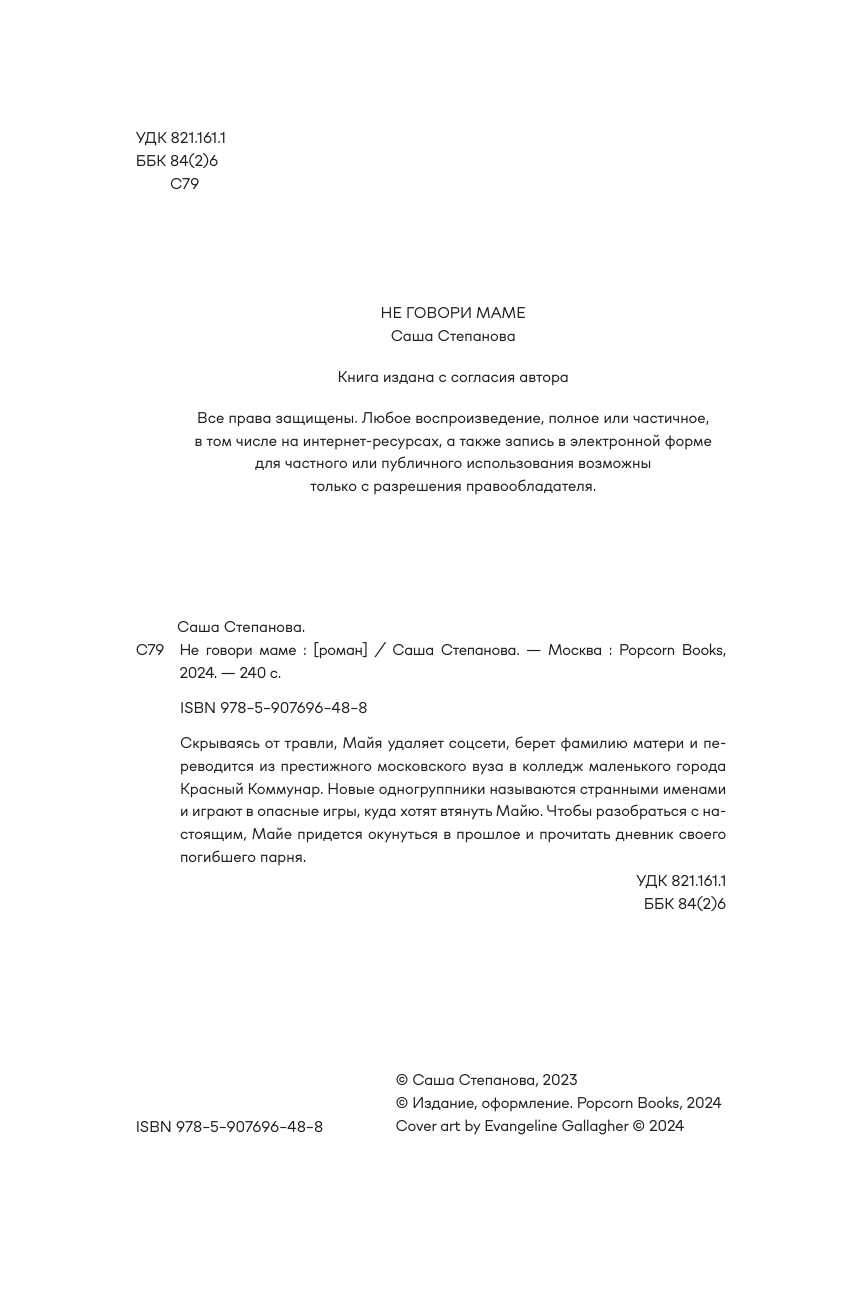 Книга: Не говори маме (Саша Степанова); Individuum / Popcorn books, 2024