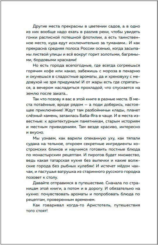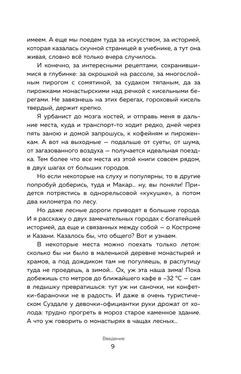 Вы собираетесь путешествовать, но не знаете, в какую сторону нашей необъятной страны отправиться? Юлия Евдокимова отвечает на ваш вопрос в своей третьей книге, посвященной удивительным российским городам и городкам. Великолепная Казань, полная необыкновенных исторических сочетаний и таких же кулинарных блюд. Дивная Кострома, с северным дыханием, духовной историей и особой едой. Маленькие обаятельные и уютные городки, расположенные недалеко от Москвы: Муром, Юрьев-Польский, Зарайск. Или подальше: Палех, Дунилово, Мстёра — с чудесными ремеслами, сырами и чудесами. Следуйте рекомендациям автора, много раз посетившего эти места, и вы очаруетесь, объедитесь и захотите возвращаться в них еще и еще.