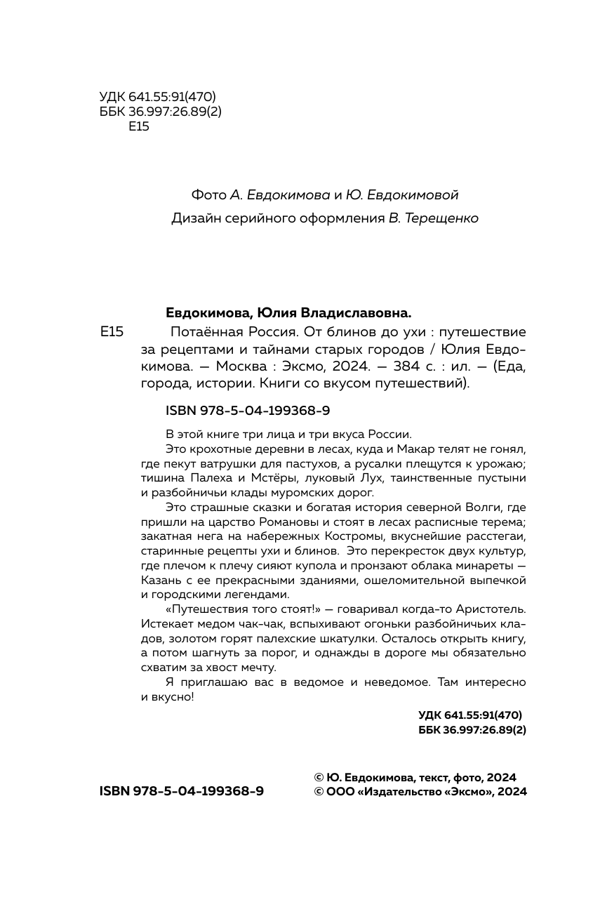 Потаённая Россия. От блинов до ухи: путешествие за рецептами и тайнами старых городов (Юлия Владиславовна Евдокимова); Эксмо, 2024