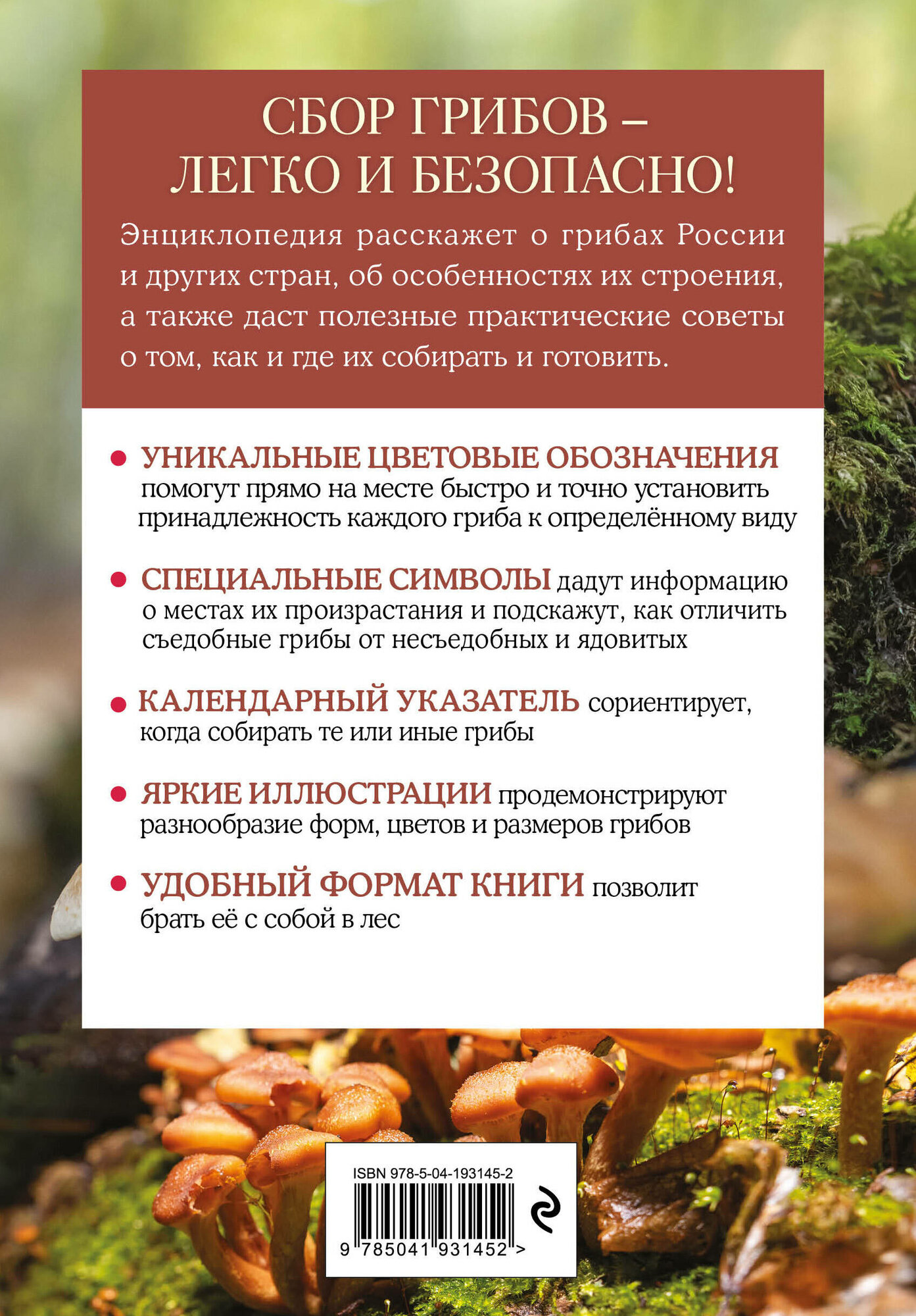 Удобный формат справочника позволит брать его с собой в лес, а красочное оформление и плотная мелованная бумага делают энциклопедию замечательным подарком по любому поводу как юным, так и взрослым грибникам!