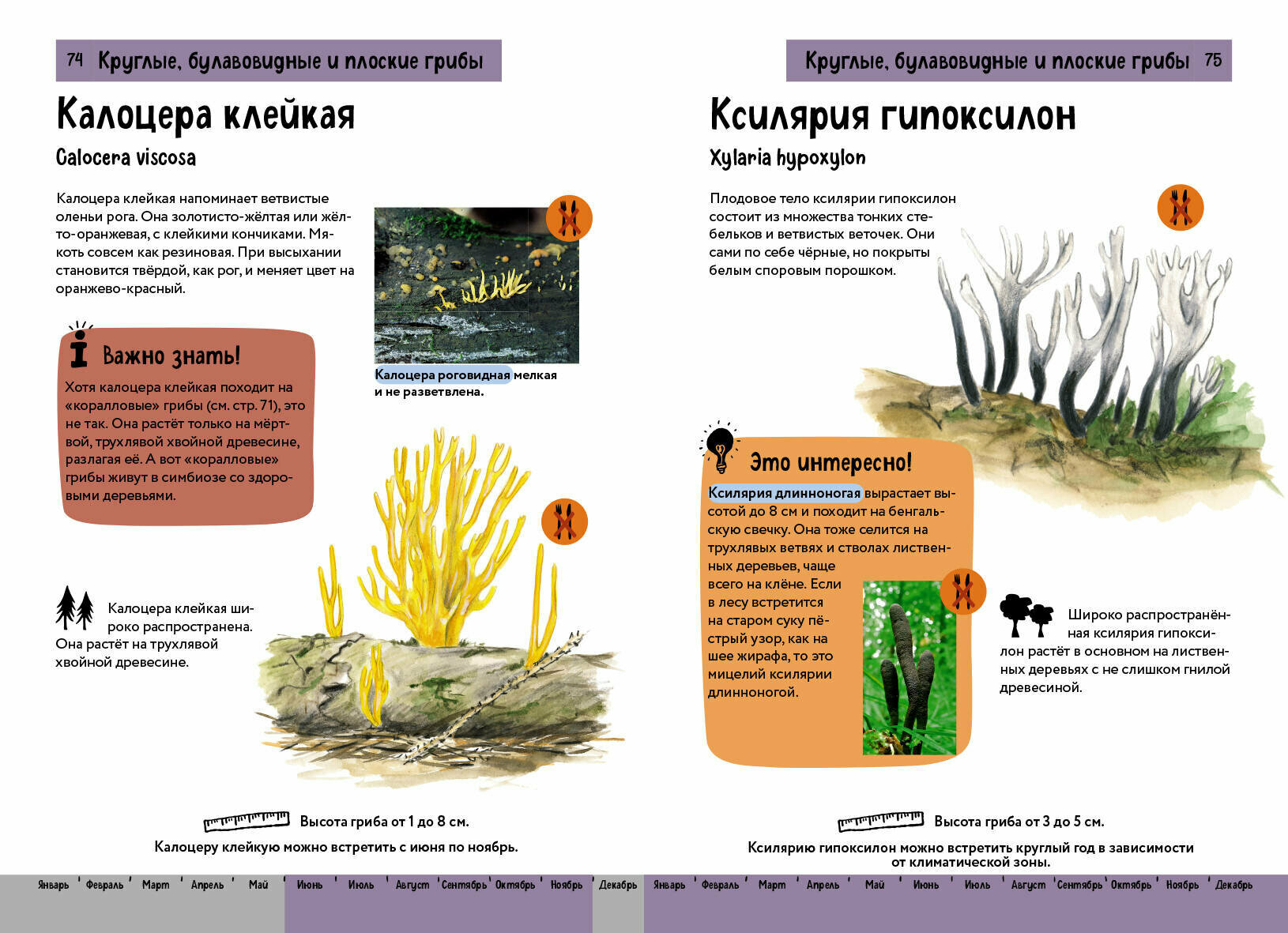Цветовые обозначения и уникальная система символов, разработанная специально для этой книги, помогут читателю самостоятельно и безошибочно установить принадлежность того или иного гриба к определённому виду. Энциклопедия украшена яркими иллюстрациями и профессиональными фотографиями, которые позволяют разглядеть формы, цвета и детали грибов во всей красе.