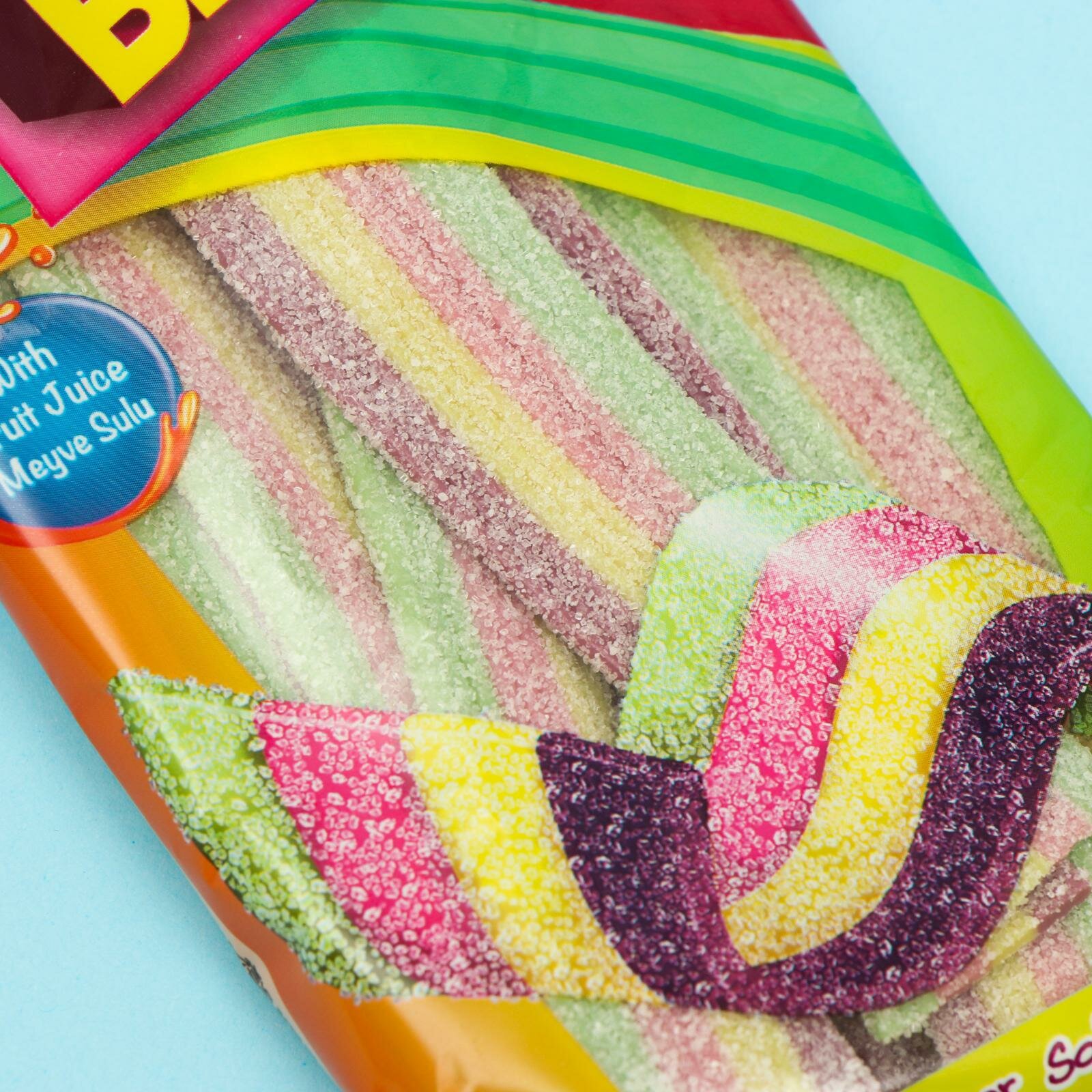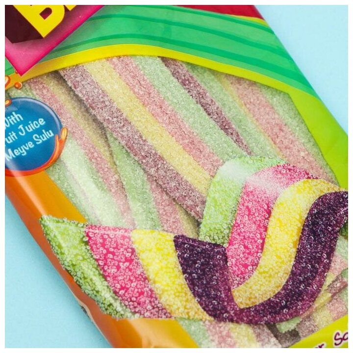 Очень кислый жевательный мармелад от компании BEBETO. Разноцветные мармеладные полоски со вкусом тутти-фрутти обязательно понравятся маленьким и взрослым любителям ярких ощущений. От такой кислятины сложно отказаться, а пачки хватит на целую компанию.