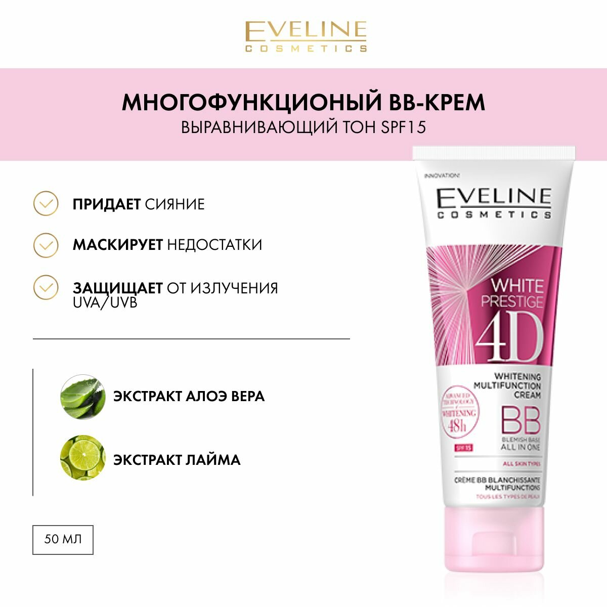 Крем для лица Eveline ВВ выравнивающий тон кожи SPF15 серии 4D 50мл