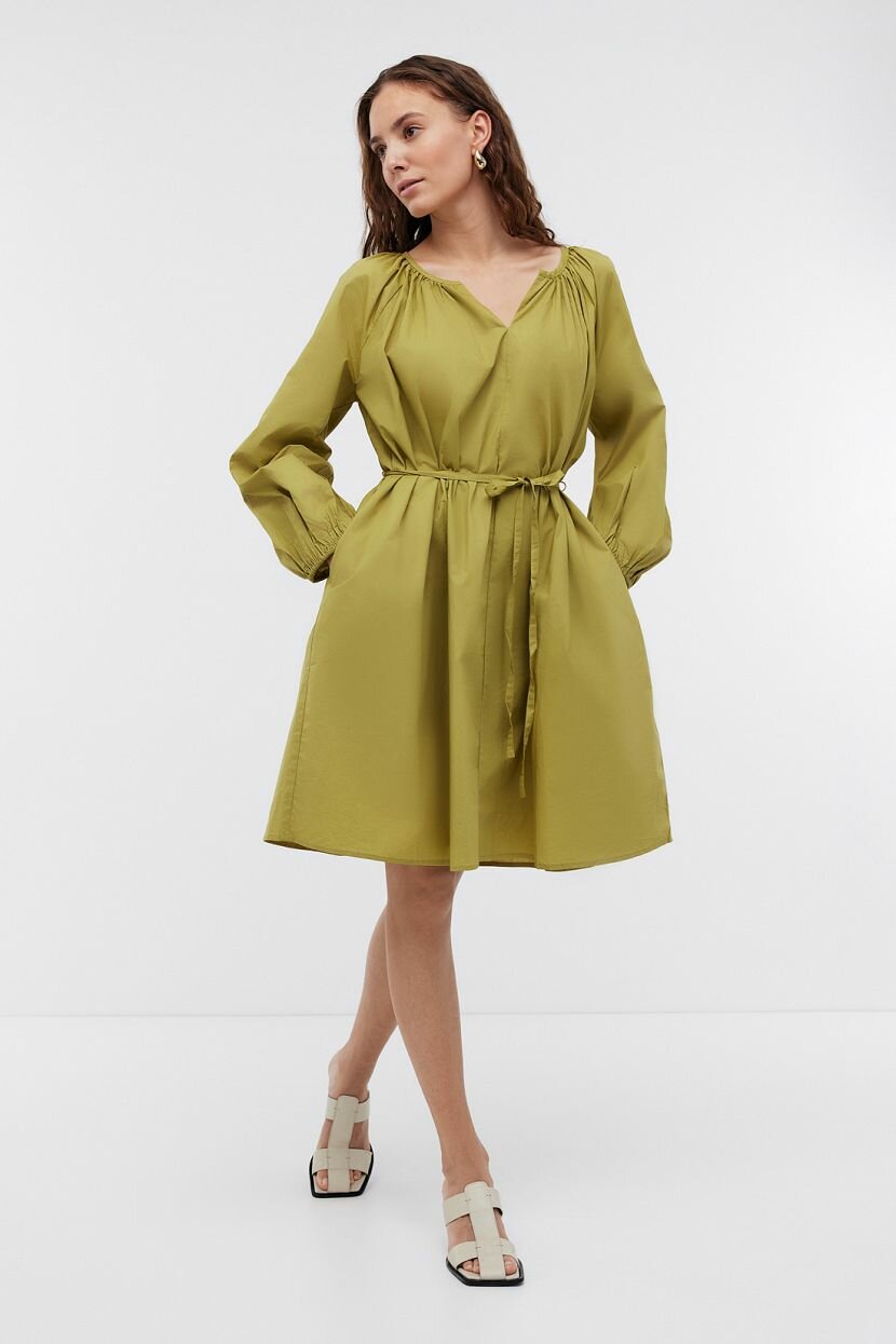 Платье миди из хлопка с поясом BAON B4524055 для женщин (размер: 48)