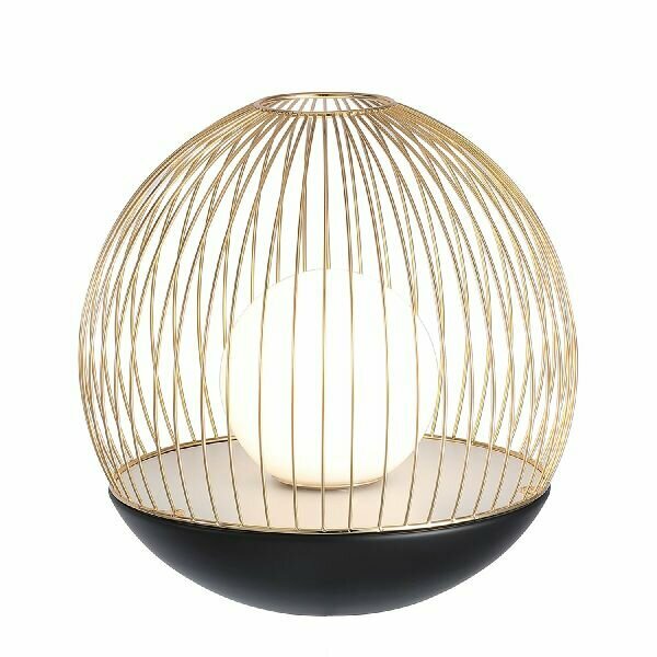 Гармоничное сочетание прочности металла и нежности стеклянных плафонов. Стеклянный выдувной плафон заключен в проволочный каркас из тонких, спаянных между собой металлических трубочек, создавая эффект золотой клетки, защищающей светящийся шар.