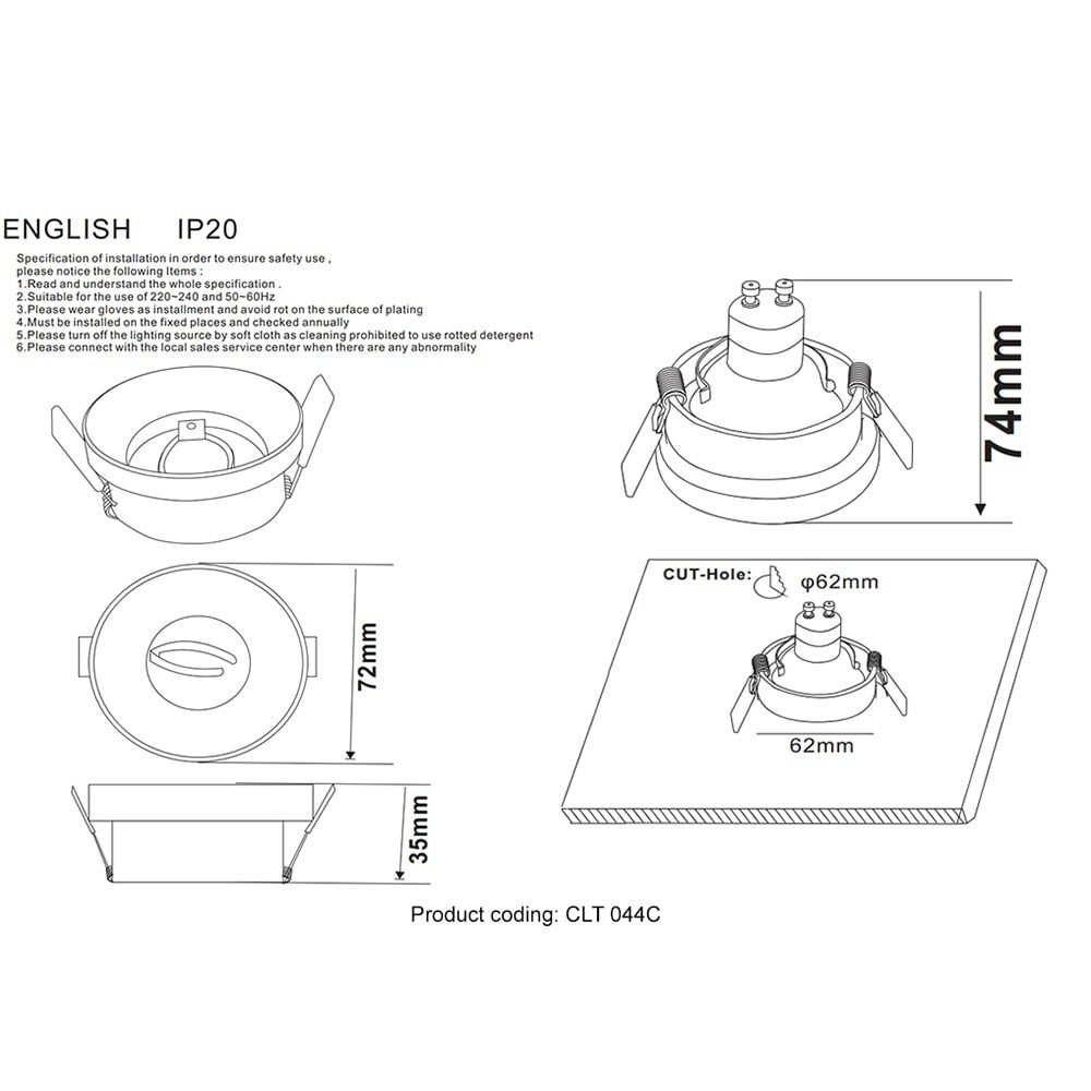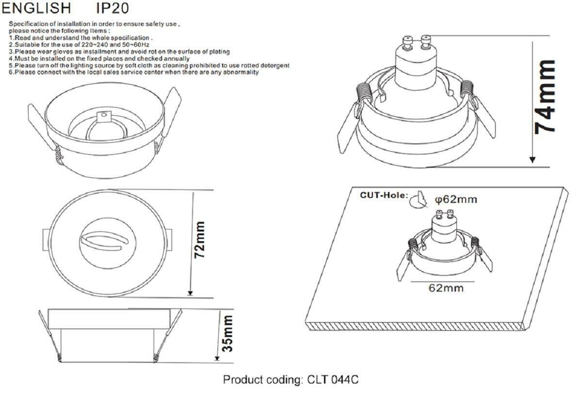 | монтажное отверстие (диаметр) | 72 |