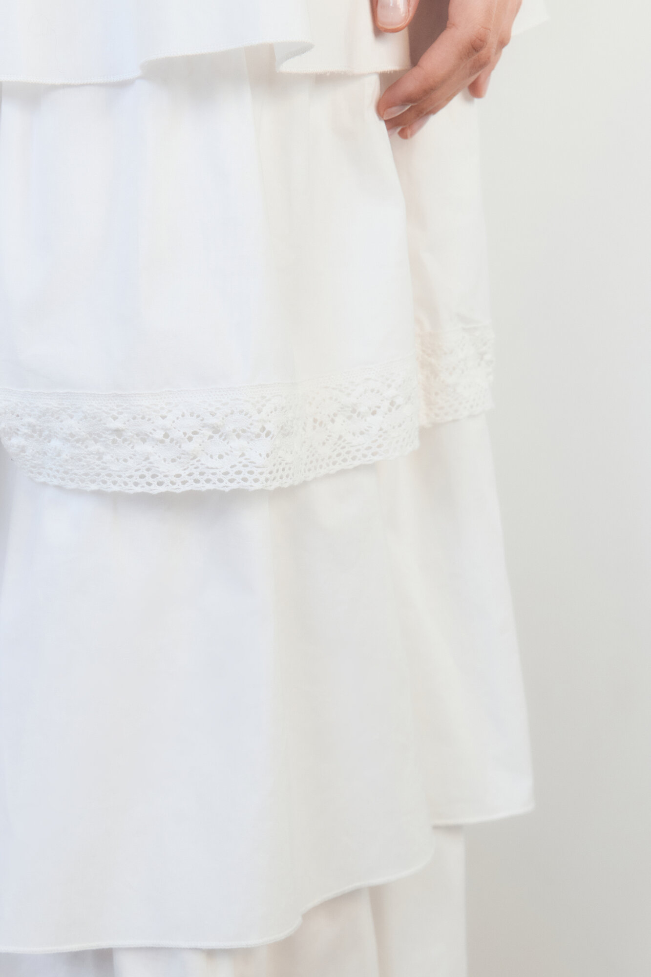 - Свободная ярусная юбка А-силуэта со средней линией талии и кружевными вставками