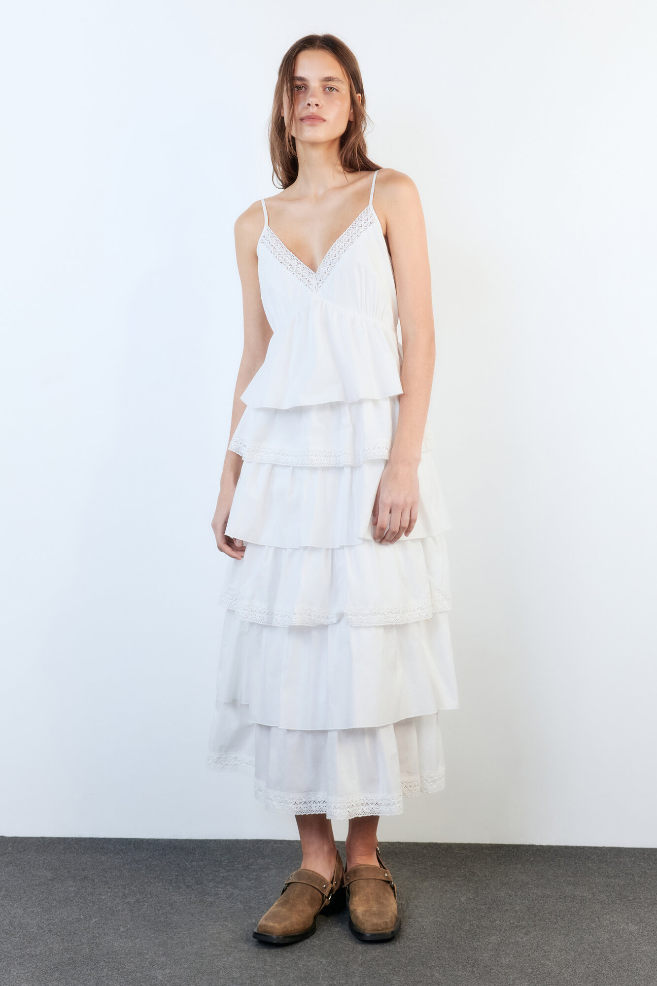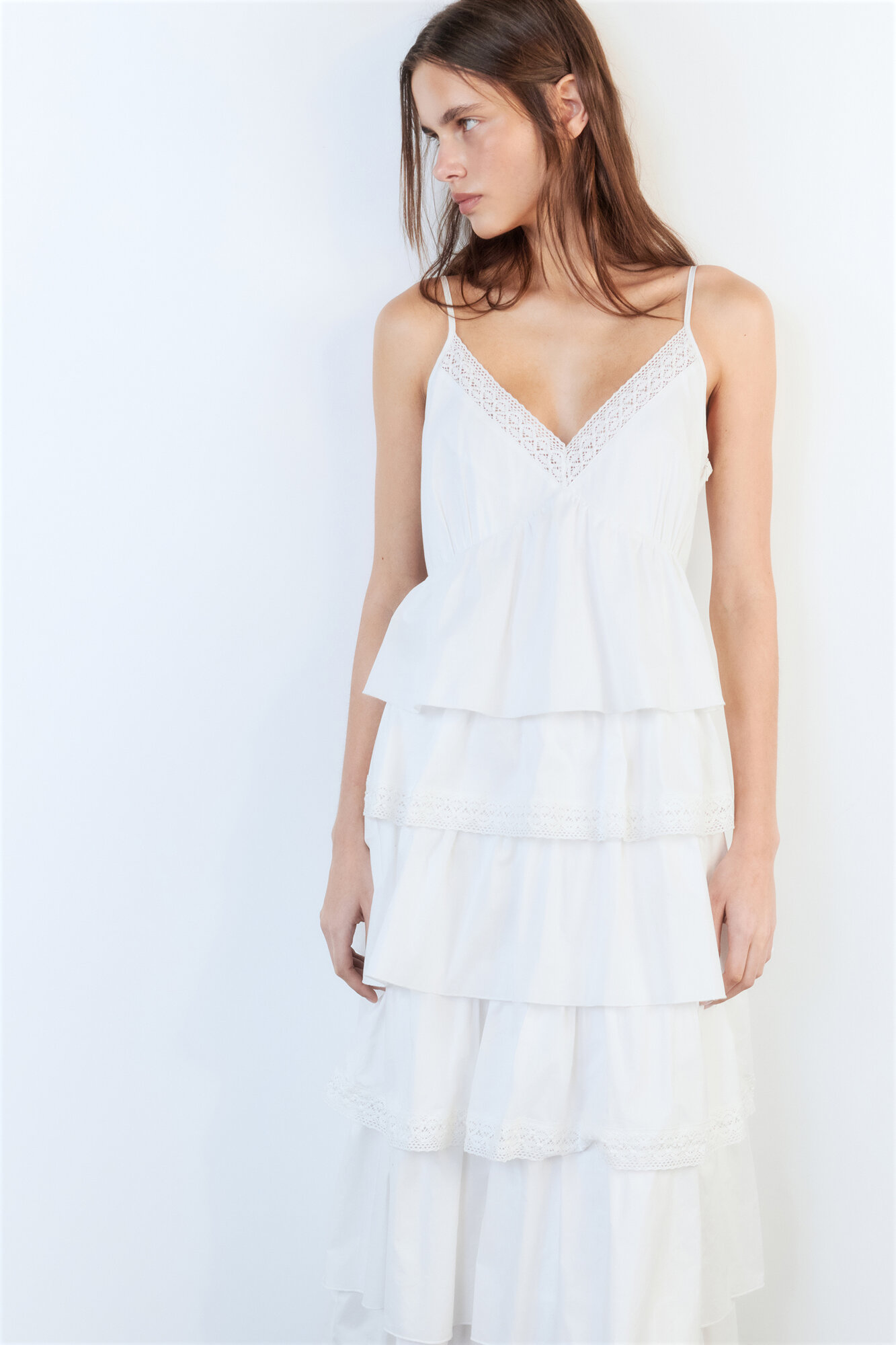 - Сарафан миди хлопковый с кружевом и оборками. Длинное женское платье миди приталенного кроя из легкой, мягкой и очень приятной к телу 100% хлопковой ткани с дышащей хлопковой подкладкой