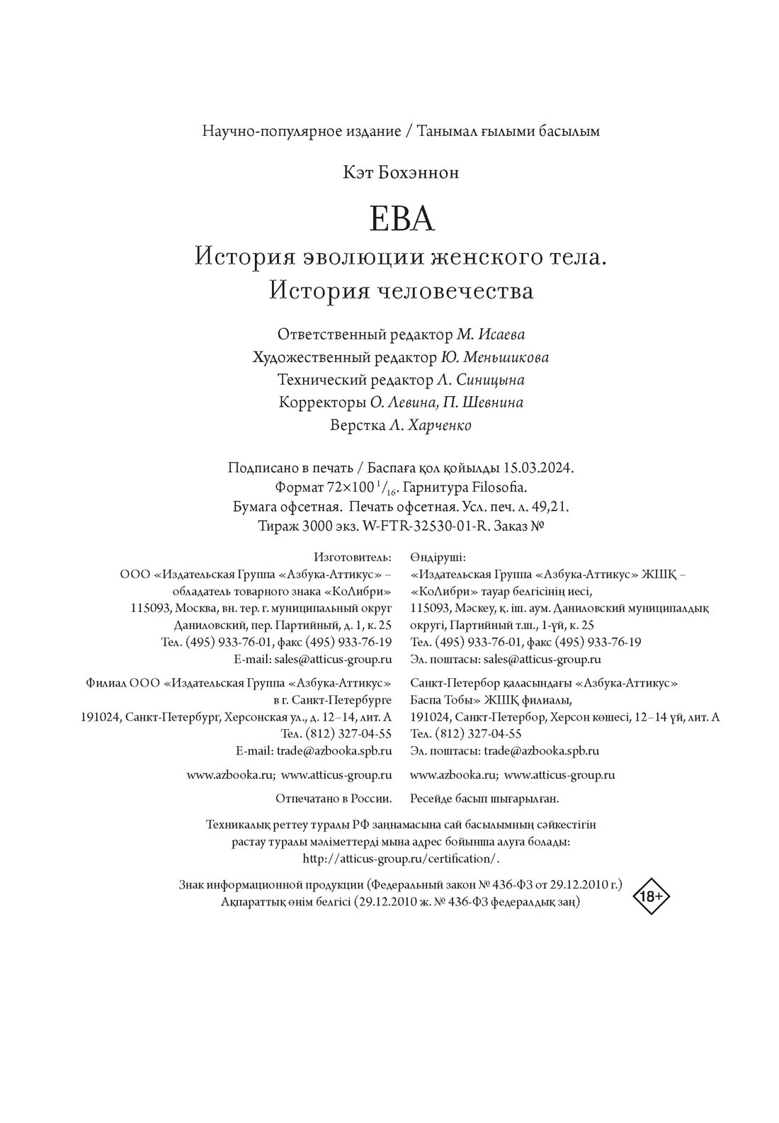 ЕВА. История эволюции женского тела. История человечества (Кэт Бохэннон); КоЛибри, 2024