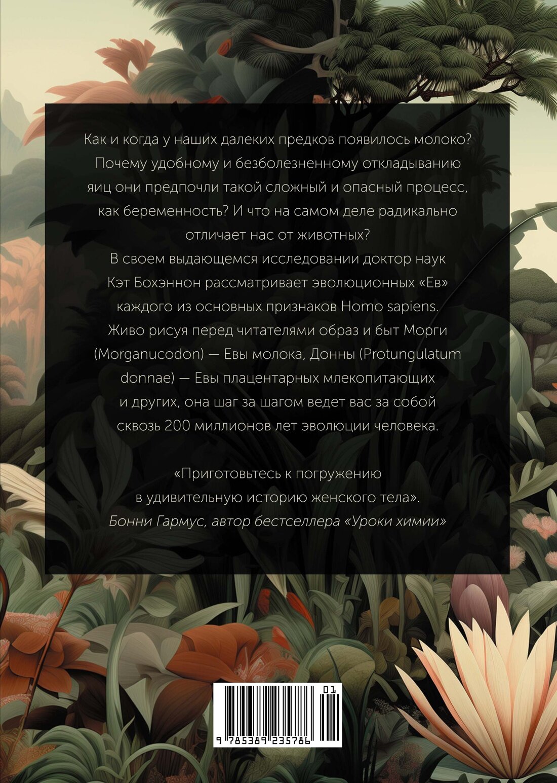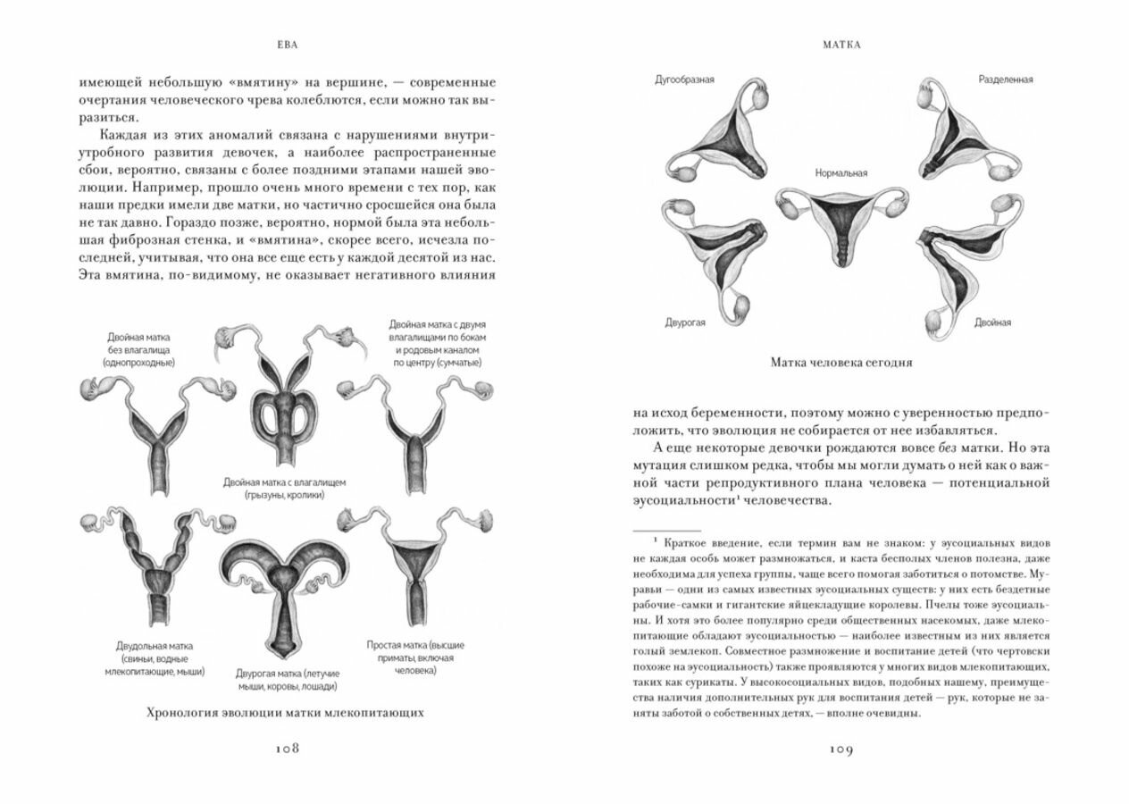 Как и когда у наших далеких предков появилось молоко? Почему удобному и безболезненному откладыванию яиц они предпочли такой сложный и опасный процесс, как беременность? И что на самом деле радикально отличает нас от животных? В своем выдающемся исследовании доктор наук Кэт Бохэннон рассматривает эволюционных «Ев» каждого из основных признаков Homo Sapiens. Живо рисуя перед читателями образ и быт Морги (Morganucodon) — Евы молока, Донны (Protungulatum donnae) — Евы плацентарных млекопитающих и других, она шаг за шагом ведет вас за собой сквозь 200 миллионов лет эволюции человека. «Приготовьтесь к погружению в удивительную историю женского тела». — Бонни Гармус, автор бестселлера «Уроки химии».