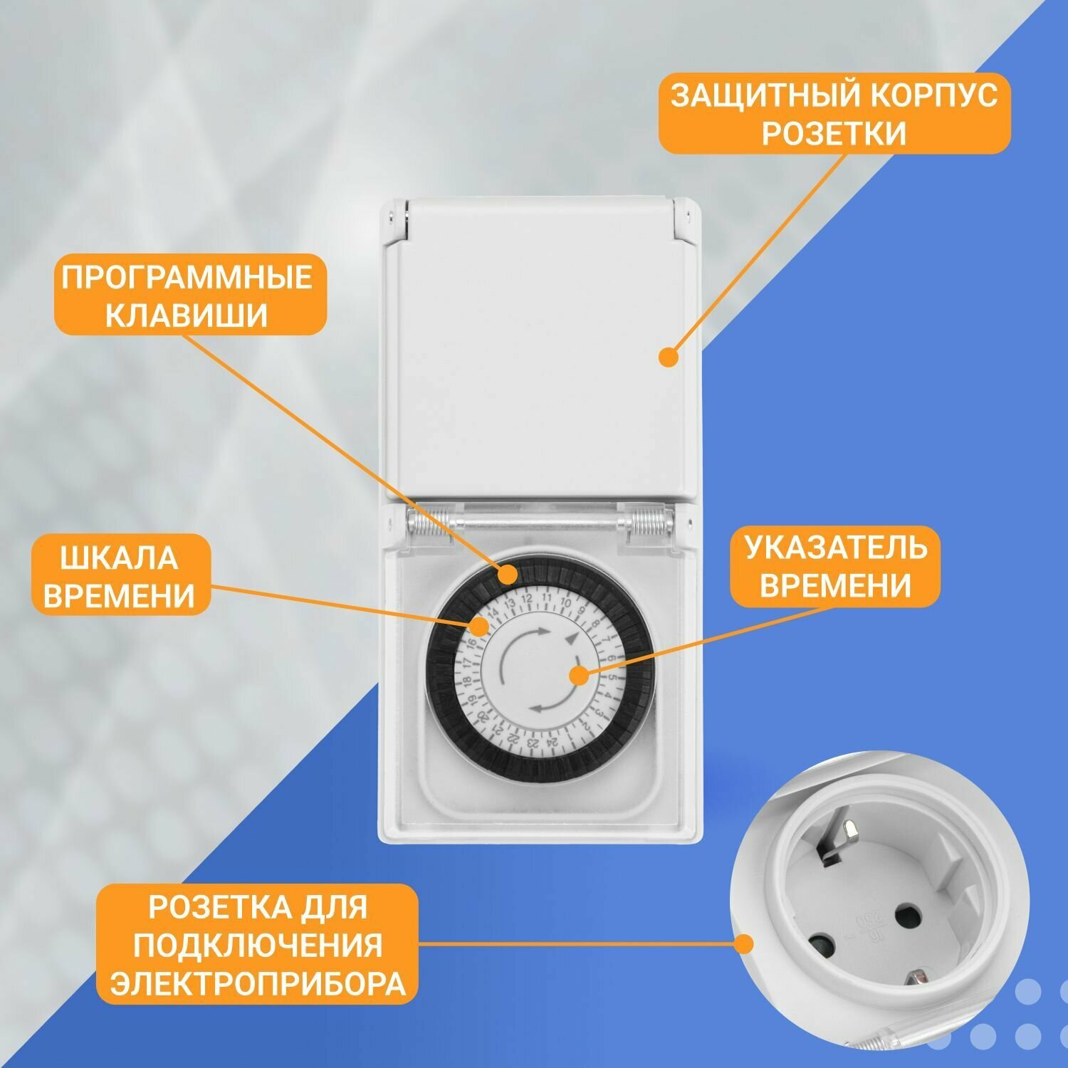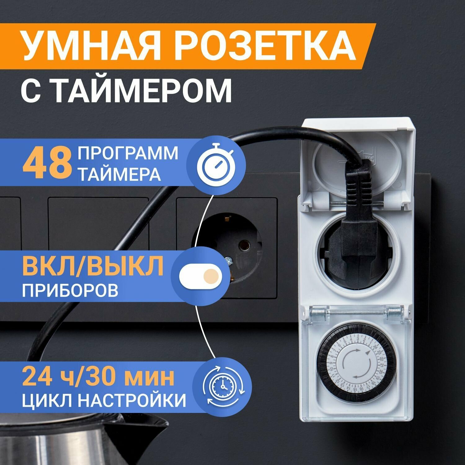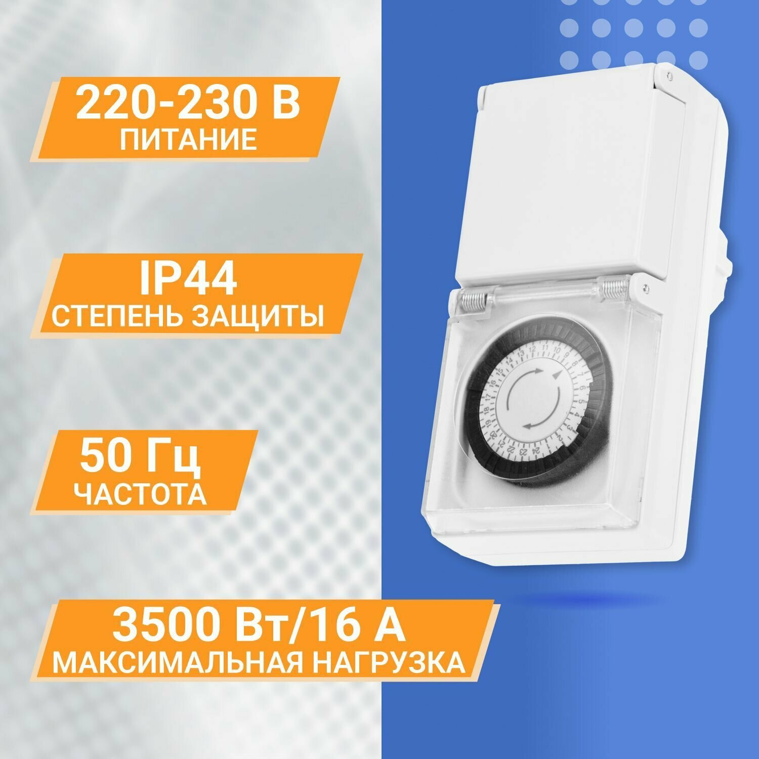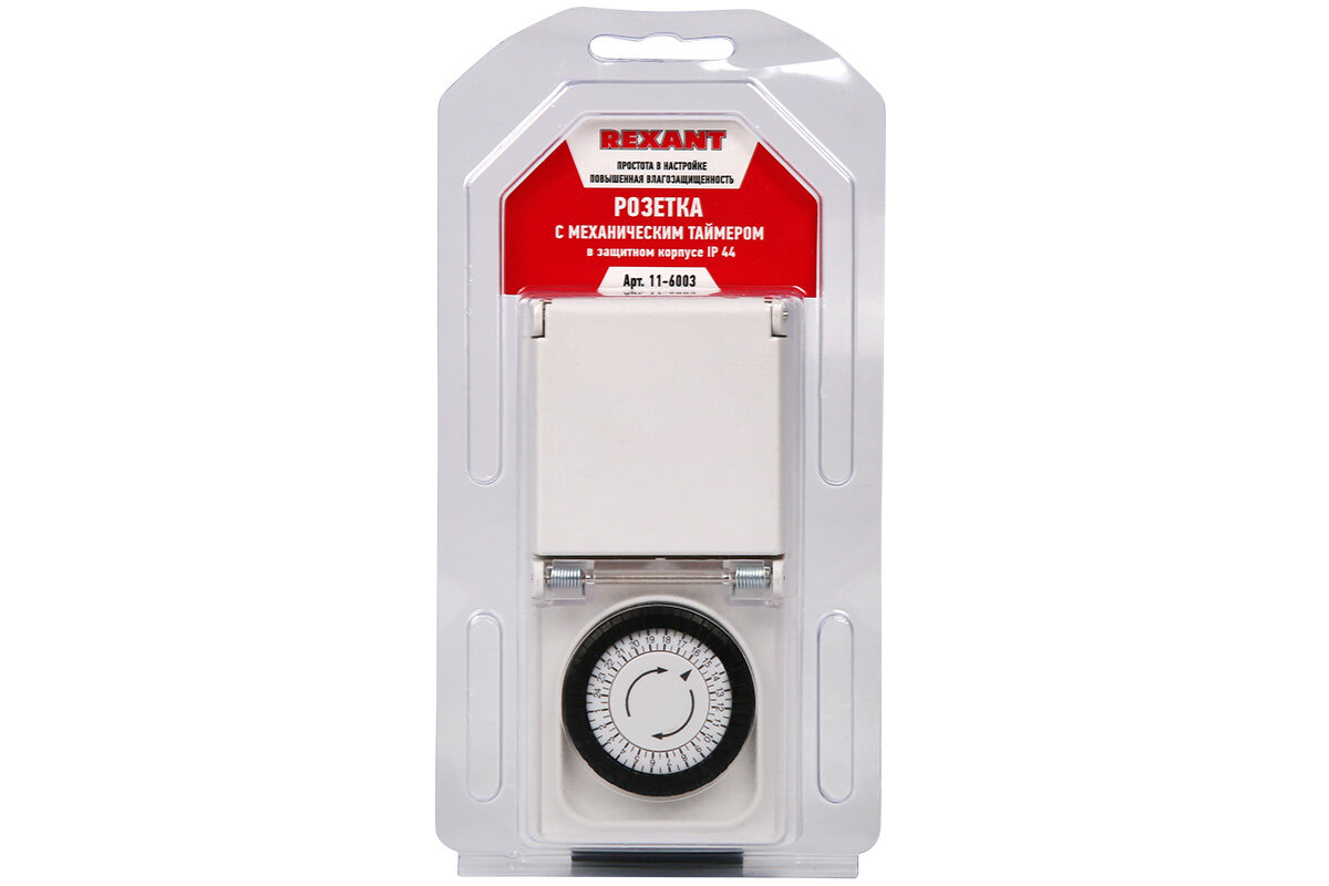 Розетка Rexant с механическим таймером суточный 30мин/24ч 48 ON/OFF в защитном корпусе IP 44 RX - 23 11-6003
