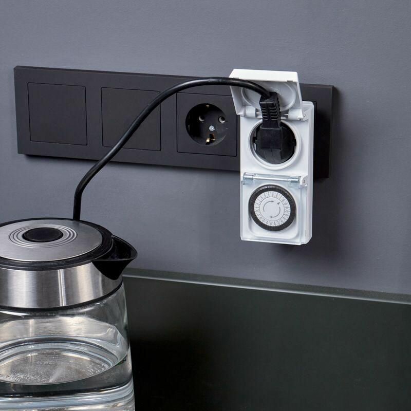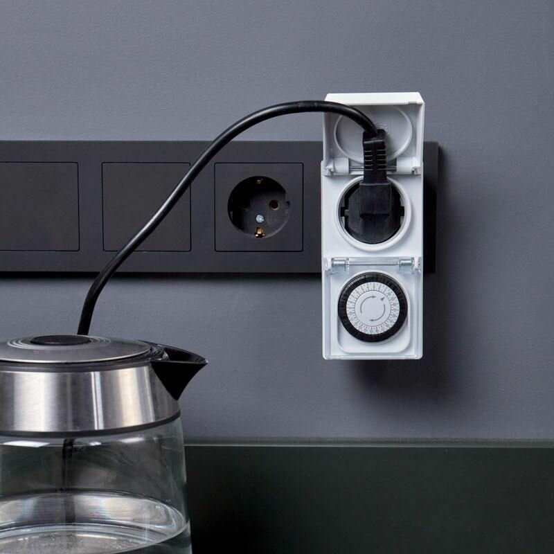 Розетка с таймером необходима для включения и выключения домашних электрических приборов в Ваше отсутствие. Задание программ осуществляется с помощью механического программного диска. Данная модель имеет повышенный класс пылевлагозащищенности IP-44.
