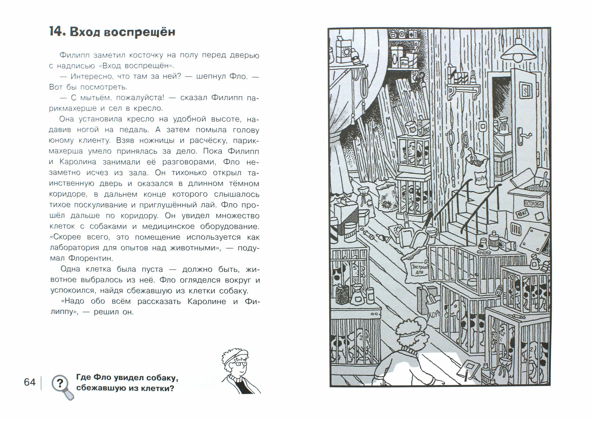 Филипп, Фло и Каро, а также кондитер Лео и комиссар Ларс - лучшие в мире сыщики! Не существует такой тайны, которую они не смогли бы разгадать.На страницах этой книги им предстоит разыскать наследство умершего доктора, найти банду похитителей собак, предотвратить отравление окружающей среды опасными химическими отходами и раскрыть тайну проклятия чёрного стрелка.Тебе тоже предстоит стать детективом! Запоминай и составляй факты. Ищи улики на картинках, прежде чем продолжить расследование на следующей странице!Для младшего и среднего школьного возраста.