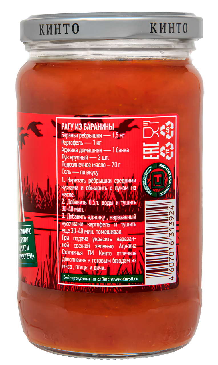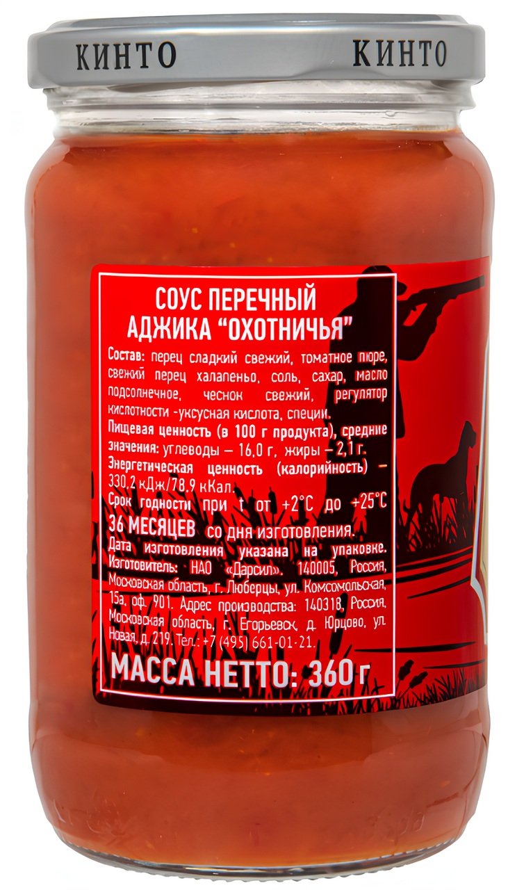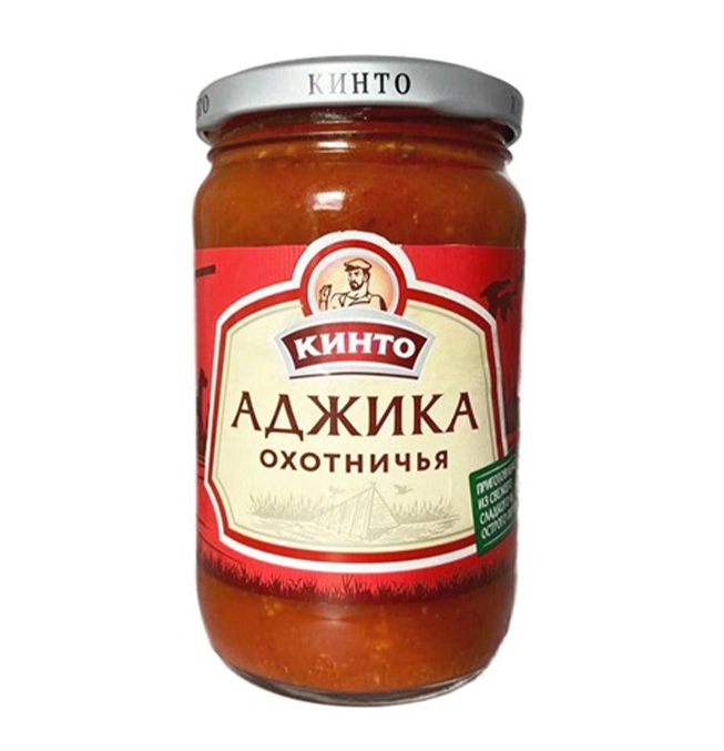 Аджика Охотничья ТМ Кинто - соус с искрящим огнем и богатым вкусом. Приготовлена из свежих овощей: болгарского перца, помидор и острого перца халапеньо.