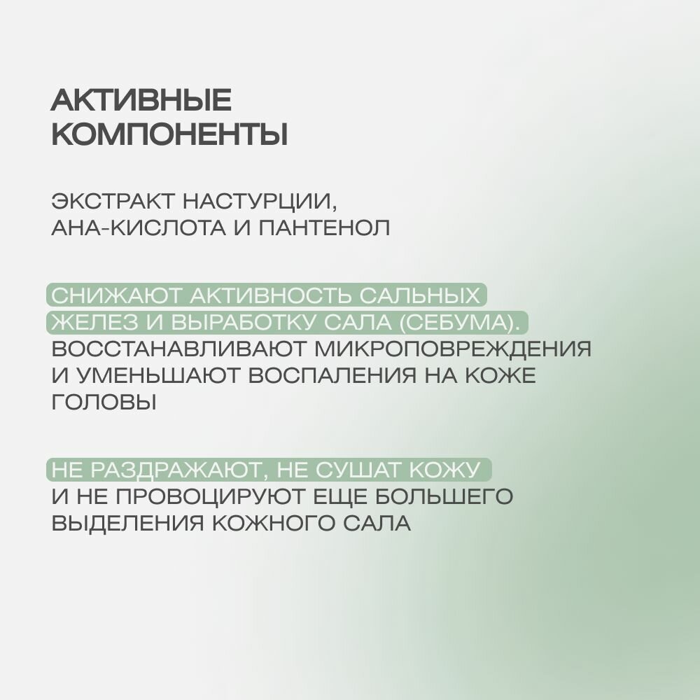 Шампунь, которыи? контролирует избыток кожного сала, удаляя натуральные жирные кислоты и загрязнения из окружающеи? среды с волос и кожи головы, помогая восстановить их естественныи? баланс.
