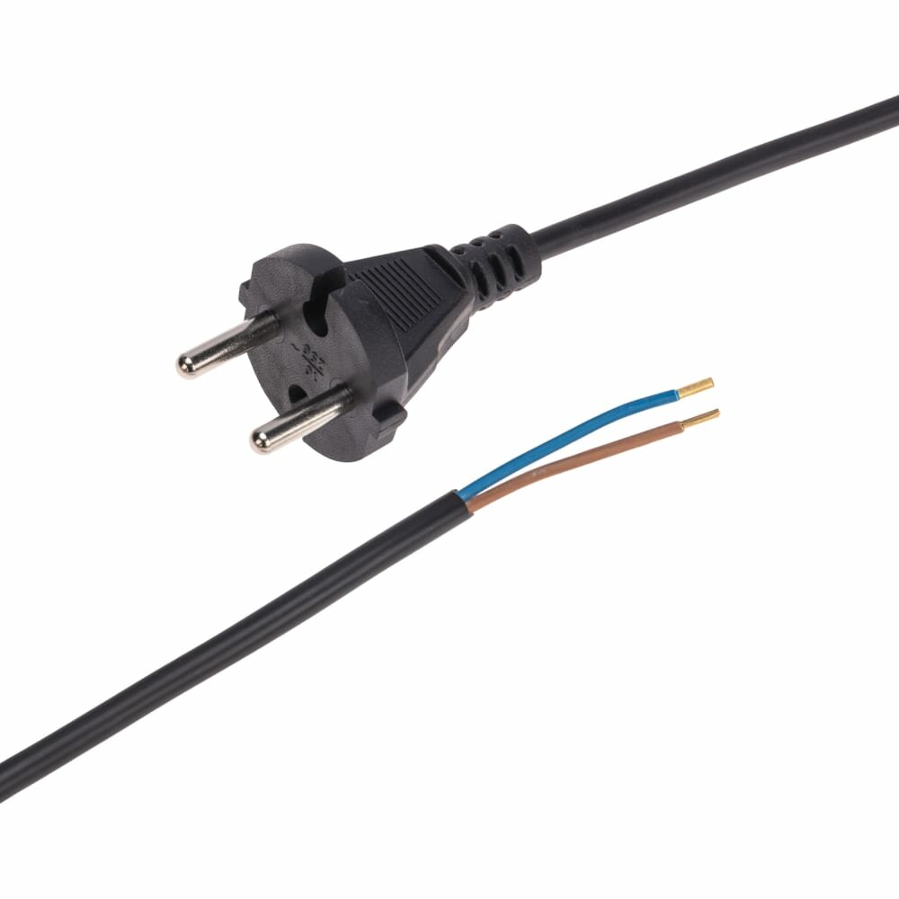 Провод ПВС сечением 2х0,75 мм² номинальным током 10 А с подготовленными (зачищенными) контактами укомплектован литой неразборной плоской вилкой (Евро).