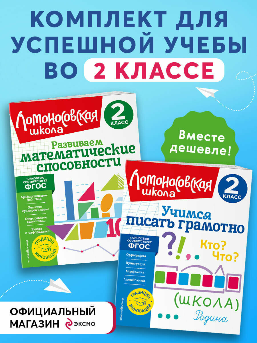 Учимся писать грамотно. 2 класс Развиваем математические способности. 2 класс Серия тренажёров предназначена для отработки полученных знаний по основным темам математики и русского языка за курс 2 класса. Задания носят как тренировочный, так и проверочный характер. В тренажёрах по русскому языку и математике все разделы организованы таким образом, чтобы первоклассник сначала мог потренироваться, а затем выполнить проверочные упражнения, к которым даны ответы. Тренажёры разработаны в соответствии с требованиями ФГОС начального общего образования.