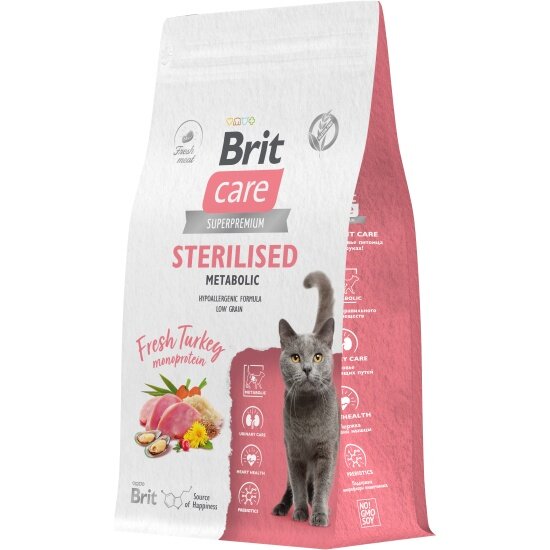 Корм сухой для стерилизованных кошек Brit Care Cat Sterilised Monoprotein Metabolic индейка 15 кг