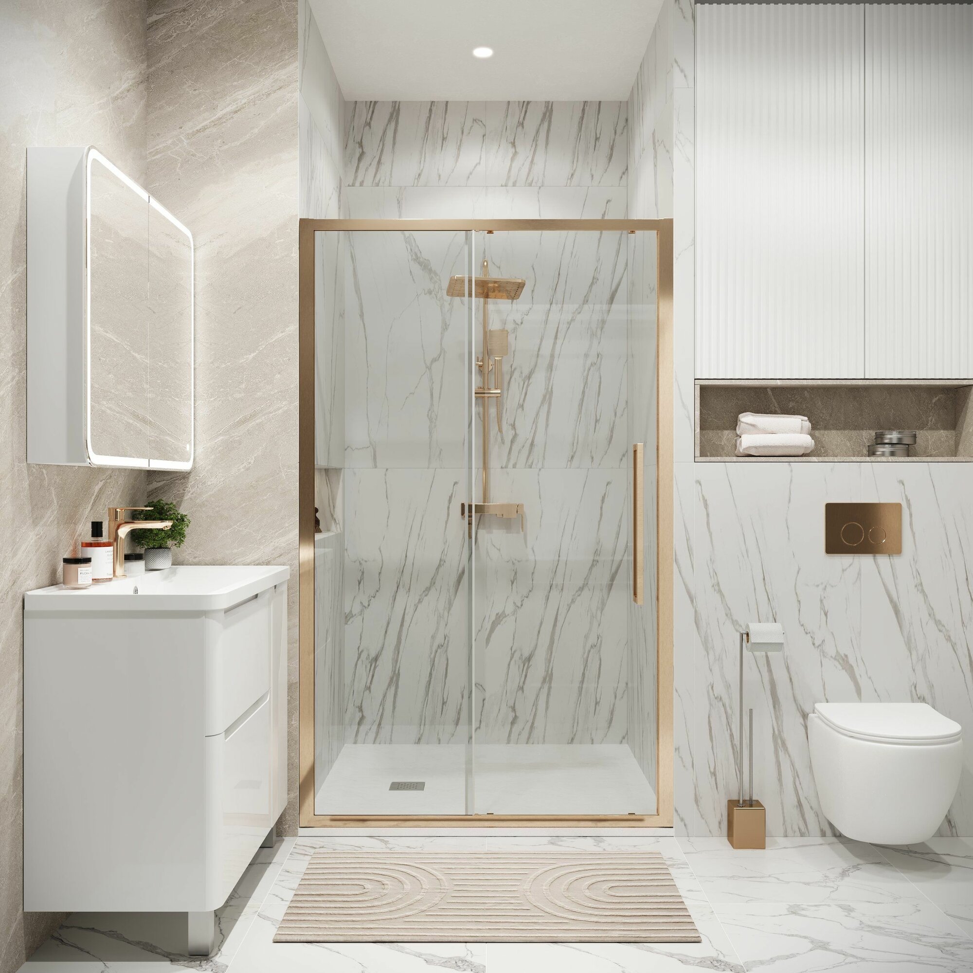 Душевая дверь с монтажом либо в нишу, либо к боковой стенке для формирования душевого уголка.