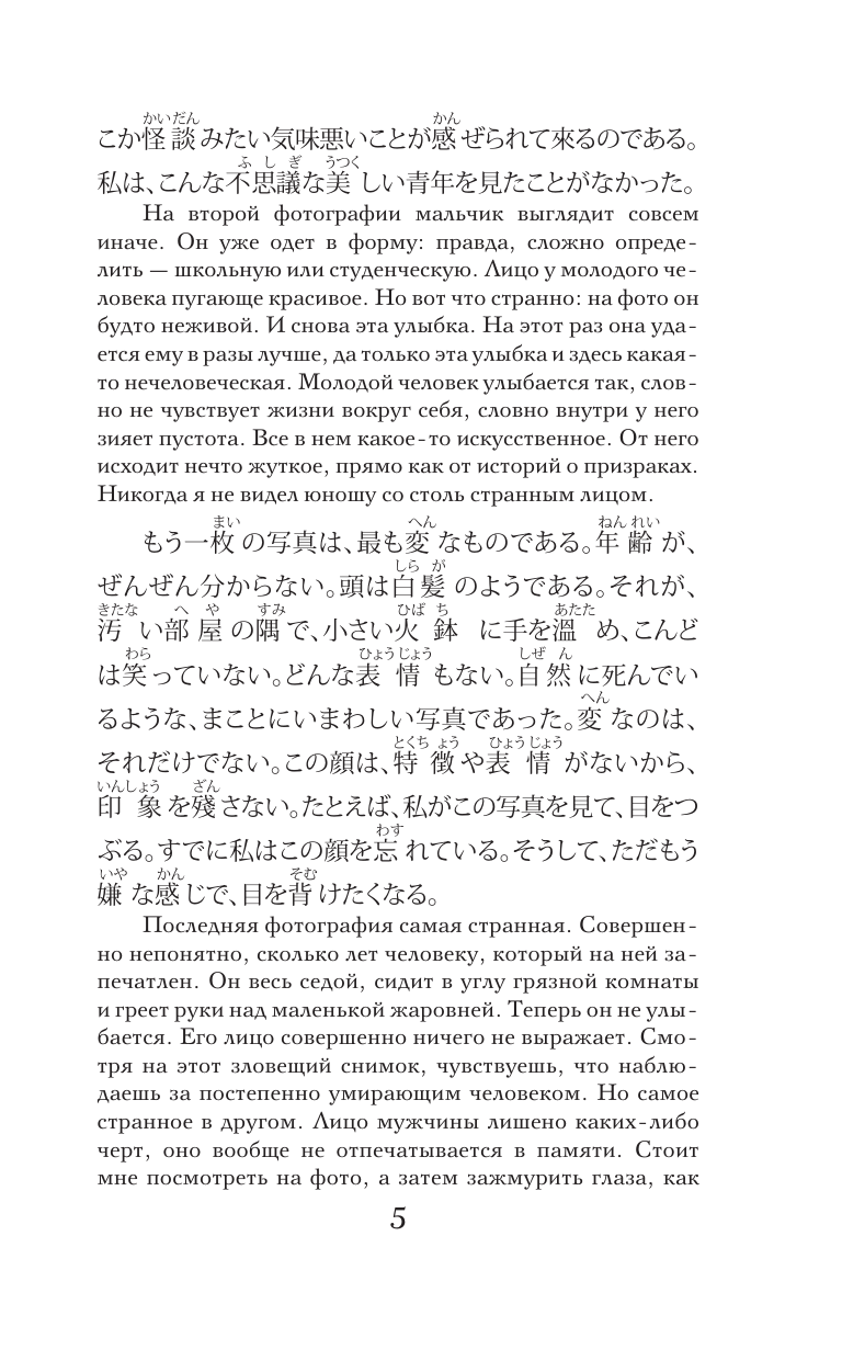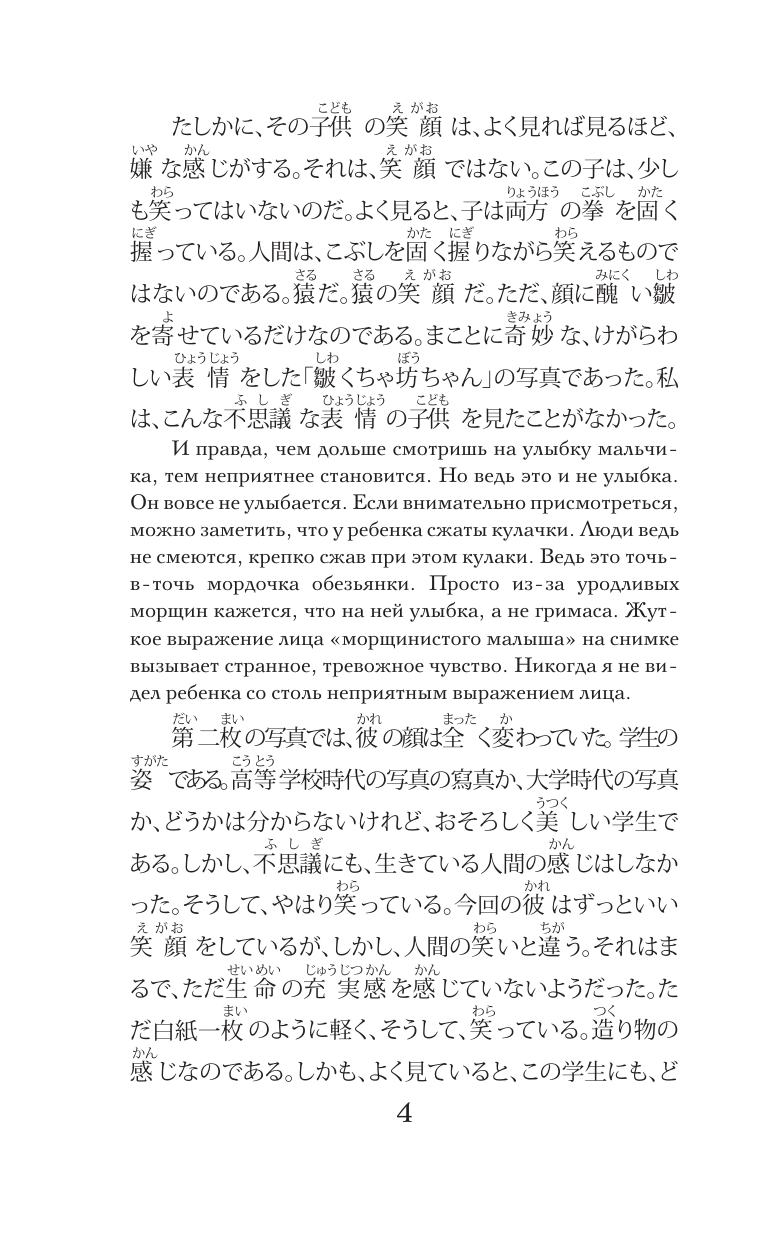 Осаму Дадзай (1909—1948) — одна из самых трагических и вместе с тем значимых фигур японской литературы. Повесть «Исповедь "неполноценного" человека» — самое известное его произведение, считающееся шедевром не только японской, но и мировой литературы. Повесть написана в жанре «ватакуси-сёсэцу» («роман о себе») и рассказывает историю юноши по имени Ёдзо, который чувствует себя отчуждённым от окружающего мира и борется с внутренними демонами. Проникая в самые тёмные уголки человеческой души, Дадзай исследует темы одиночества, страха и поиска смысла в послевоенной Японии. Повесть была экранизирована под одноименным названием, а также получила адаптацию в виде аниме-антологии «Классические истории» и полнометражного анимационного фильма «HUMAN LOST. Исповедь неполноценного человека». Текст произведения адаптирован для начального уровня владения японским языком; в конце книги вы найдете упражнения и словарь. Книга будет полезна всем, кто изучает японский язык.