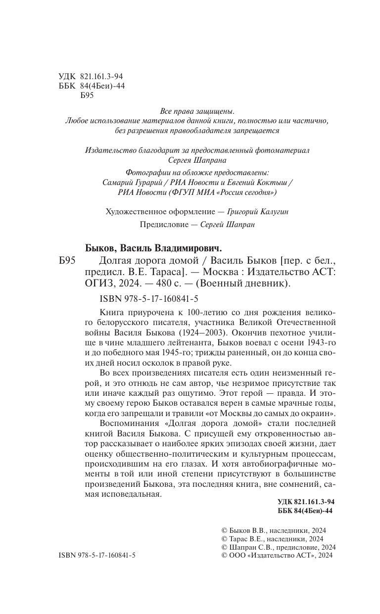 Книга: Долгая дорога домой (Василь Владимирович Быков); АСТ, 2024