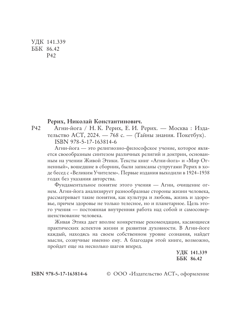 Книга: Агни-йога (Елена Ивановна Рерих, Николай Константинович Рерих); АСТ, 2024