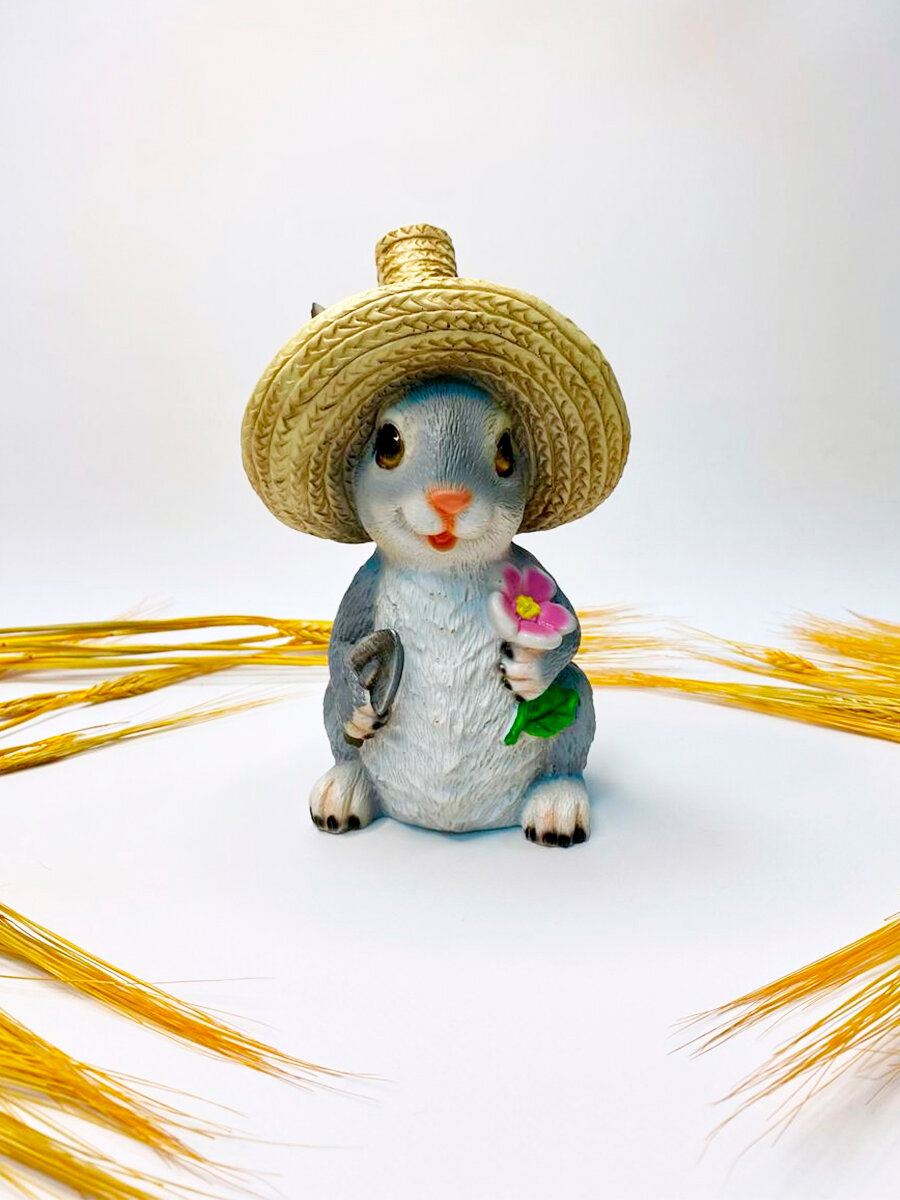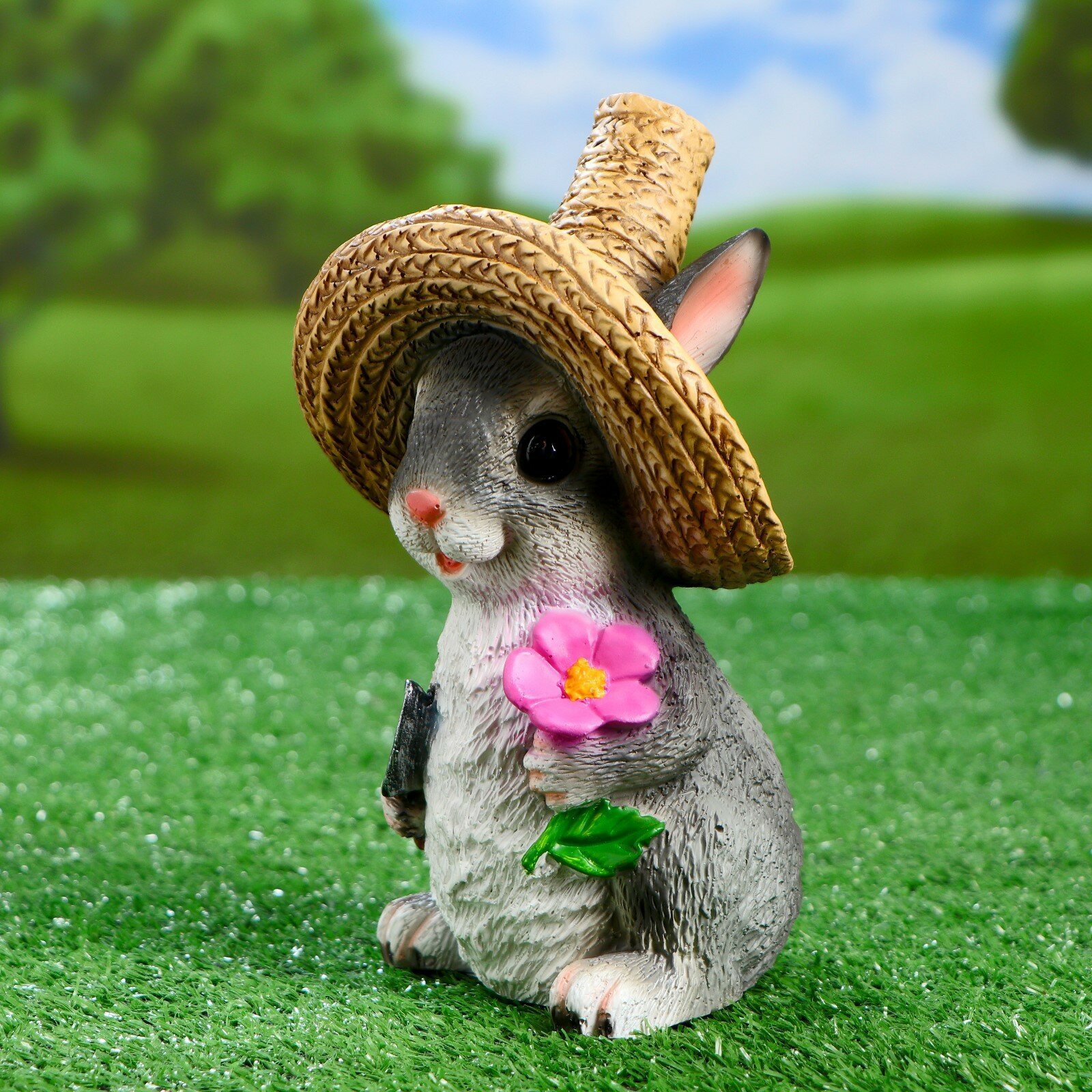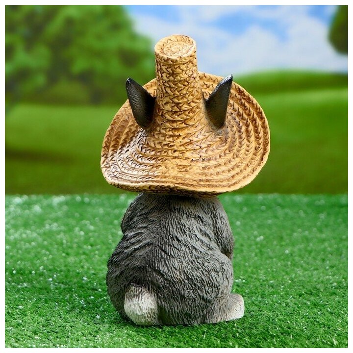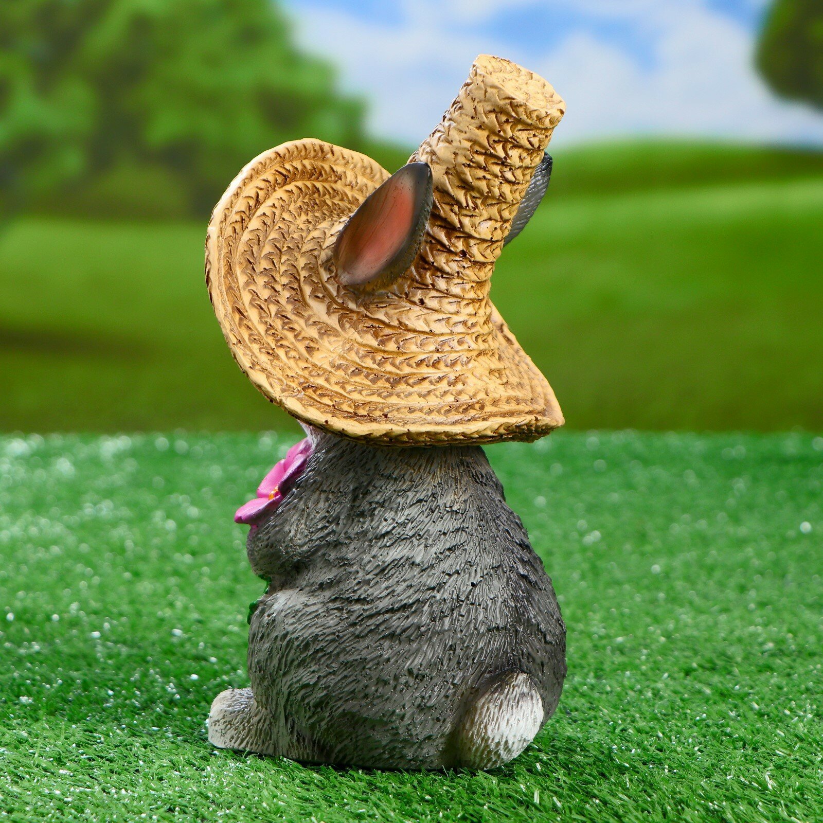 Фигурка декоративная садовая Зайка в соломенной шляпе 1 шт -