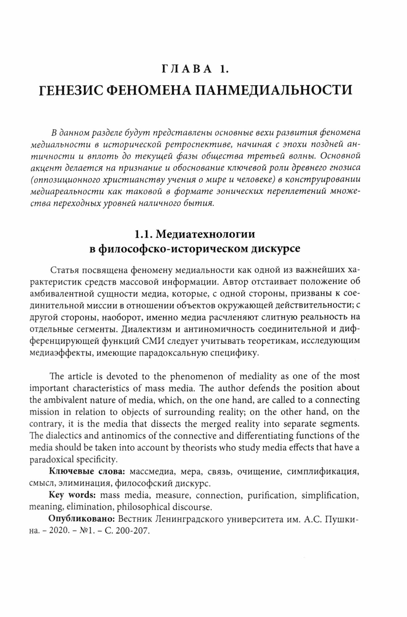 Работа предназначена специалистам в области медиафилософии, антропологии средств массовой информации, преподавателям и студентам гуманитарных направлений подготовки.