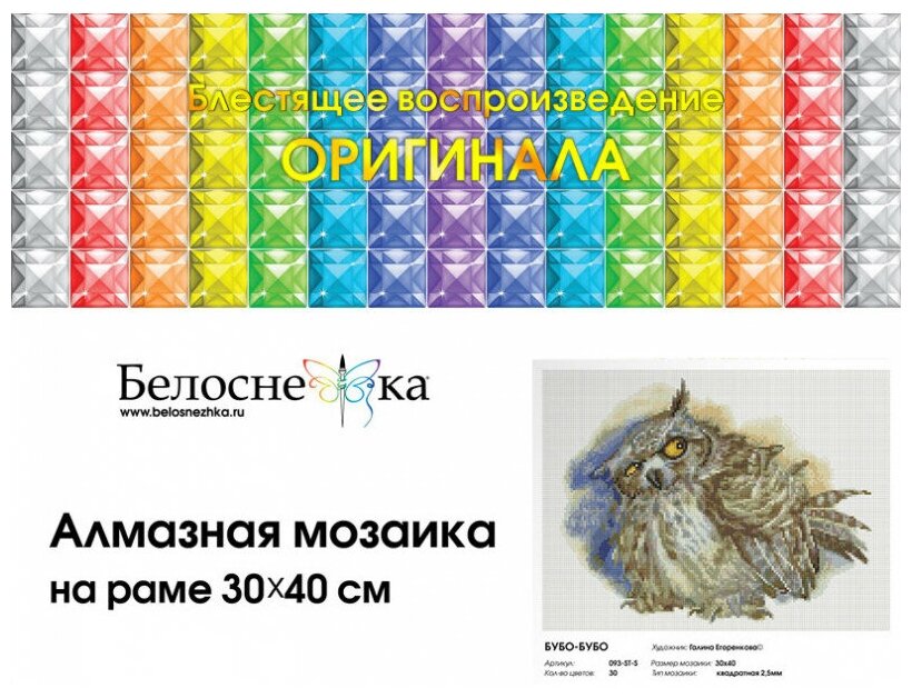 На сегодняшний день товар «Картина мозаикой Белоснежка Бубо Бубо 30x40 см 093-ST-S» можно купить с кешбеком в 1 магазине: Яндекс.Маркет
